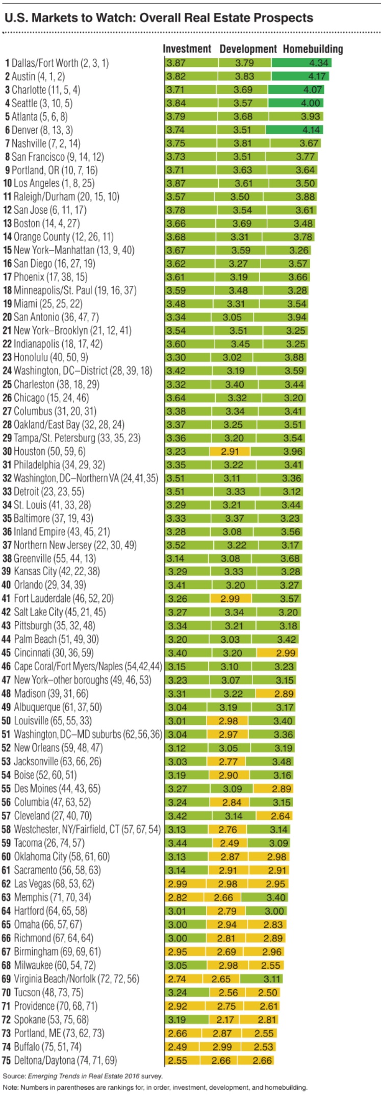 2016 Most attractive real estate markets in the United States and Canada