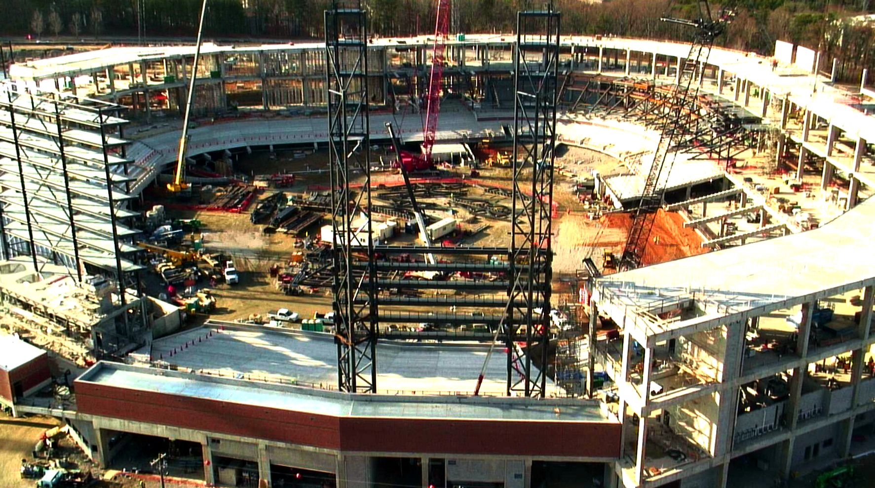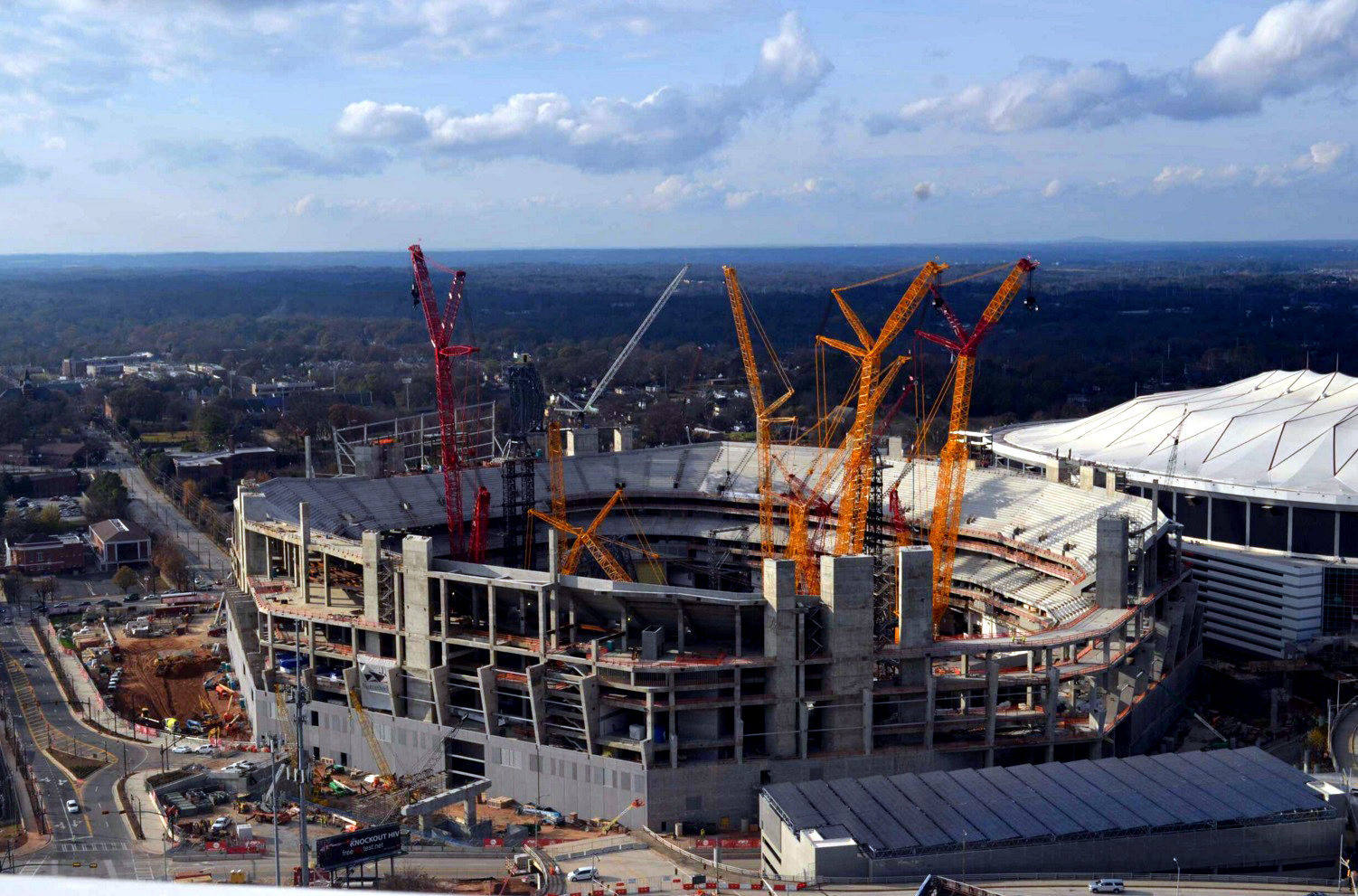 The new stadium home for the Atlanta Falcons’ is located next to the 22-year-old Georgia Dome. The the stadium cost is currently $1.4 billion.