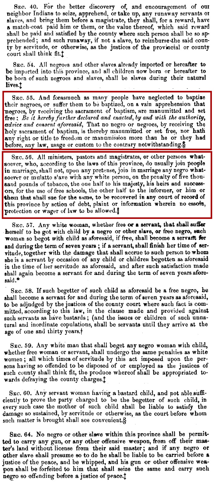 In 1639, Maryland became the first colony to specifically state that baptism as a Christian did not make an enslaved African a free person.