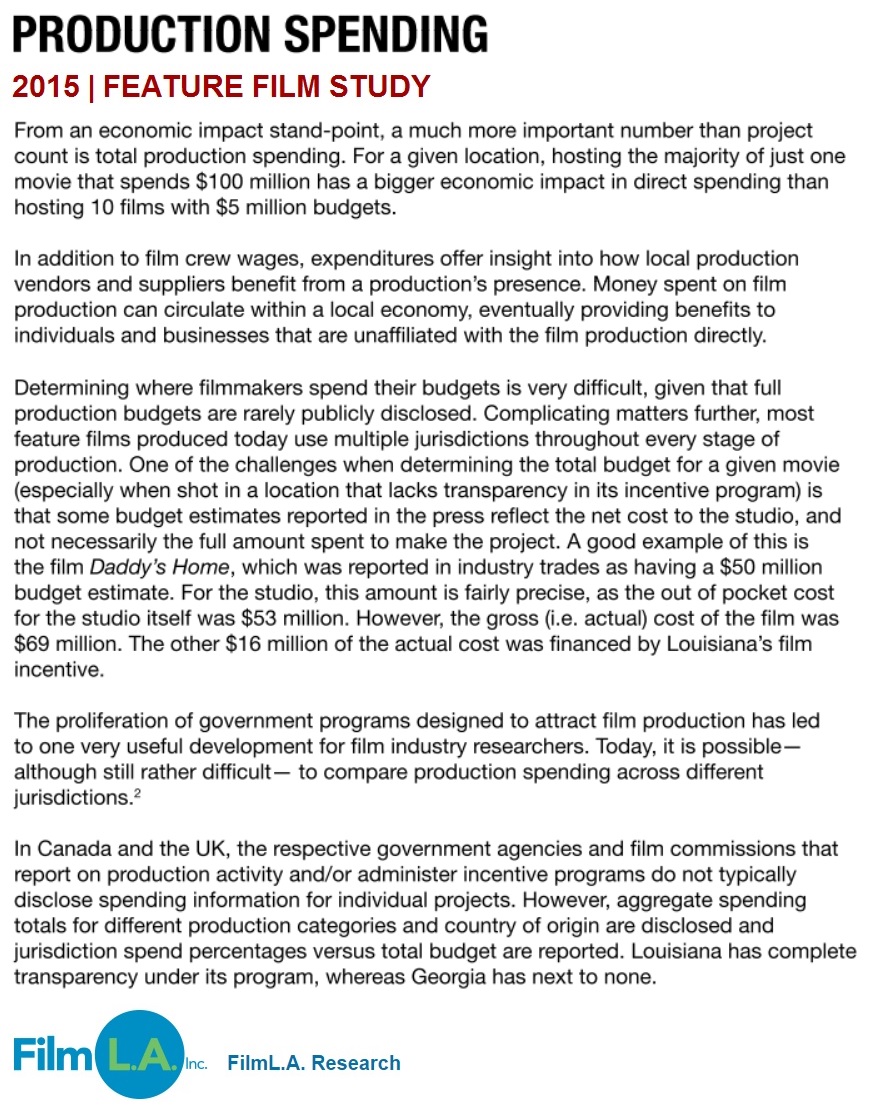 Where movies are made- 2015 Feature Film Production Study