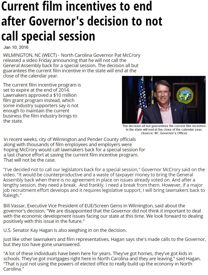 The N.C. film industry quickly left for Georgia and Louisiana, states that offered a lot more.