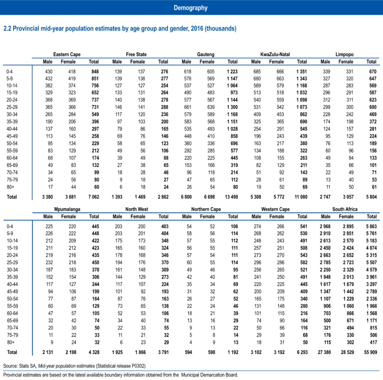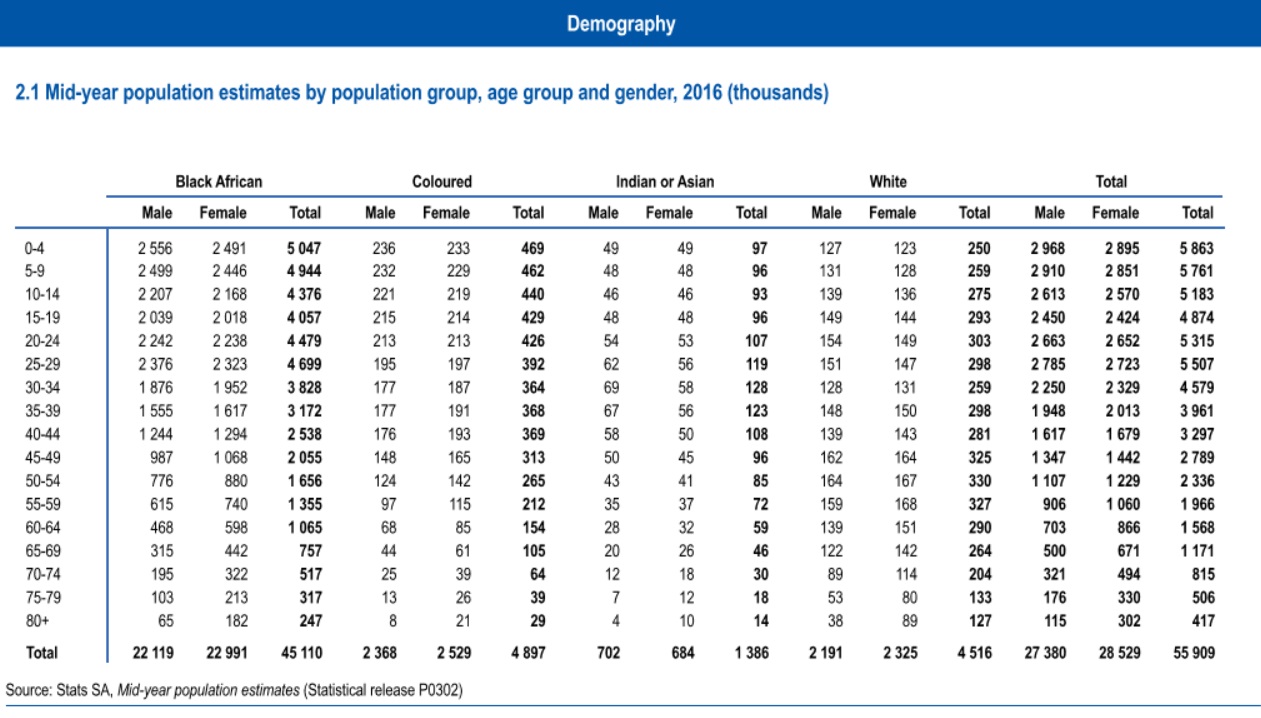 South Africa’s population has grown over the past 10 years reaching 55.90 million people in 2016, up from 40.6 million people in 1996.