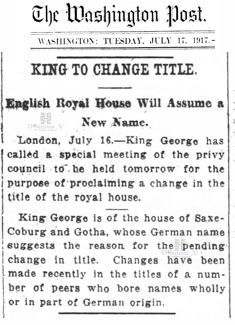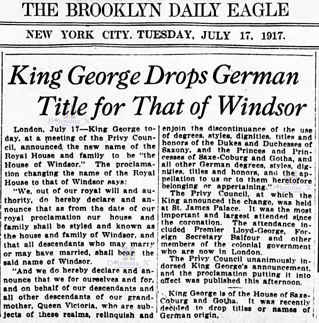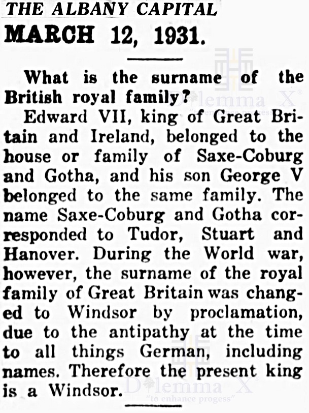 The following are historical newspaper articles giving a refreshing look back at when Windsor became the new surname for the current British ruling house.
