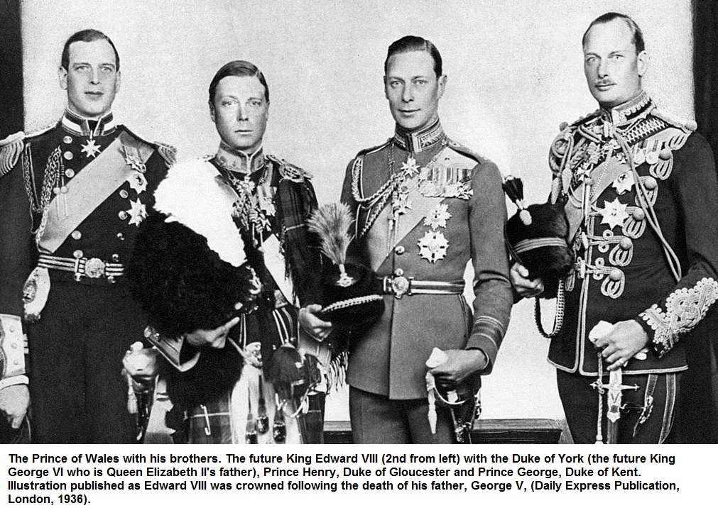 Edward VIII (Edward Albert Christian George Andrew Patrick David Windsor) was King of the United Kingdom and the Dominions of the British Empire, and Emperor of India, from 20 January 1936 until his abdication on 11 December 1936 when he became Duke of Windsor. Edward VIII was the eldest son of King George V and Queen Mary. His brother was Albert, Second-in-line to the throne, who was the father of Queen Elizabeth II.