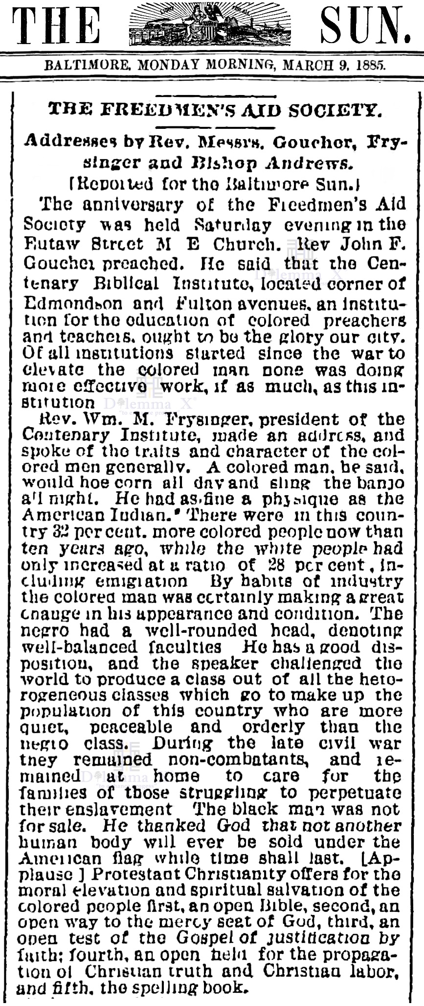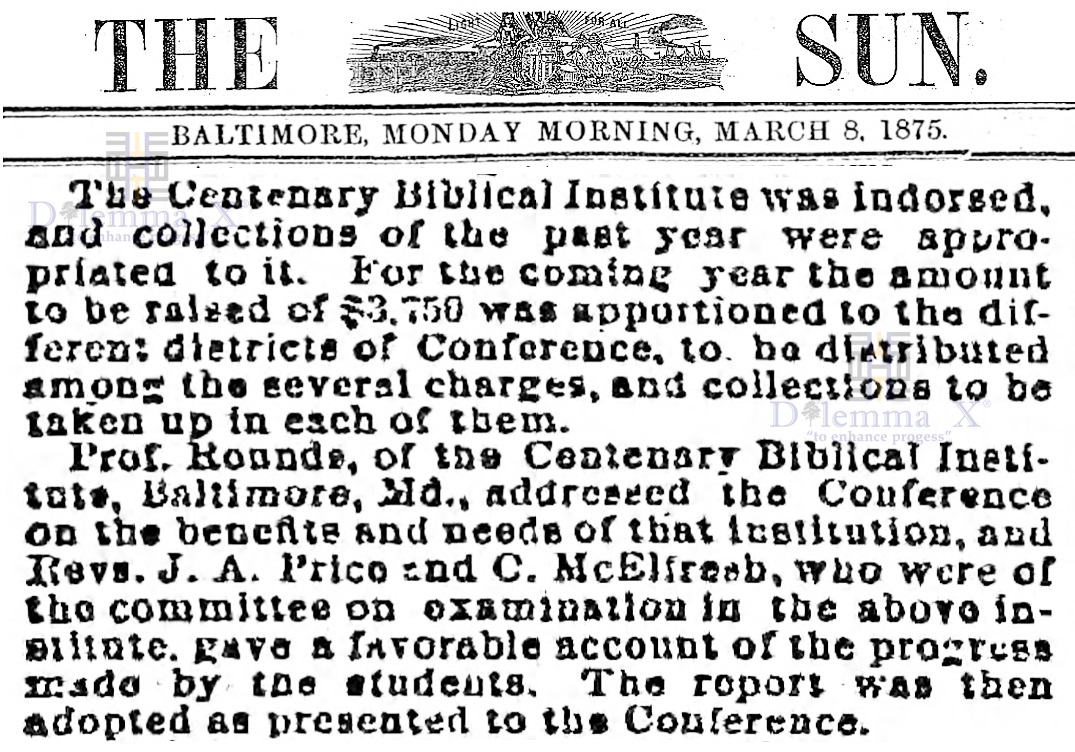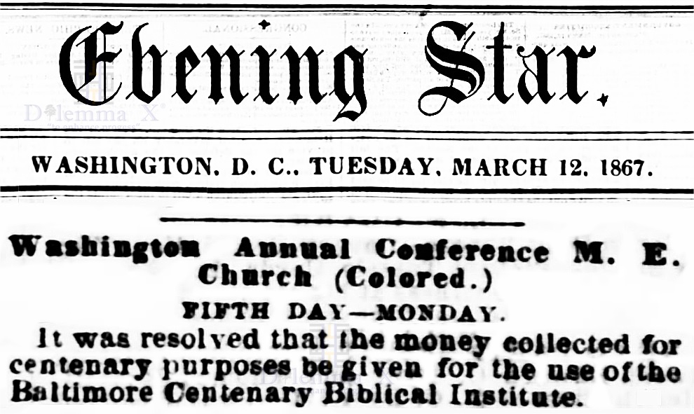 Morgan State University was founded in 1867 as the Centenary Biblical Institute by the Baltimore Conference of the Methodist Episcopal Church.