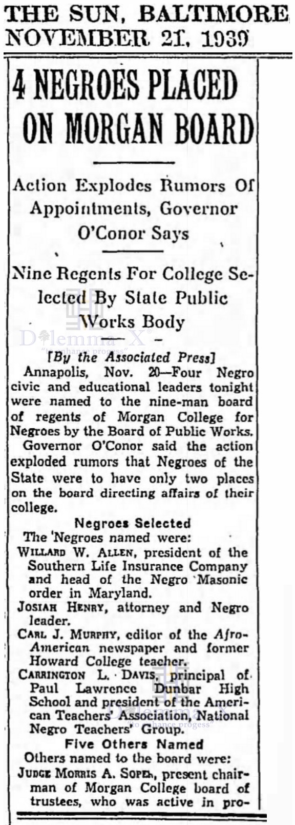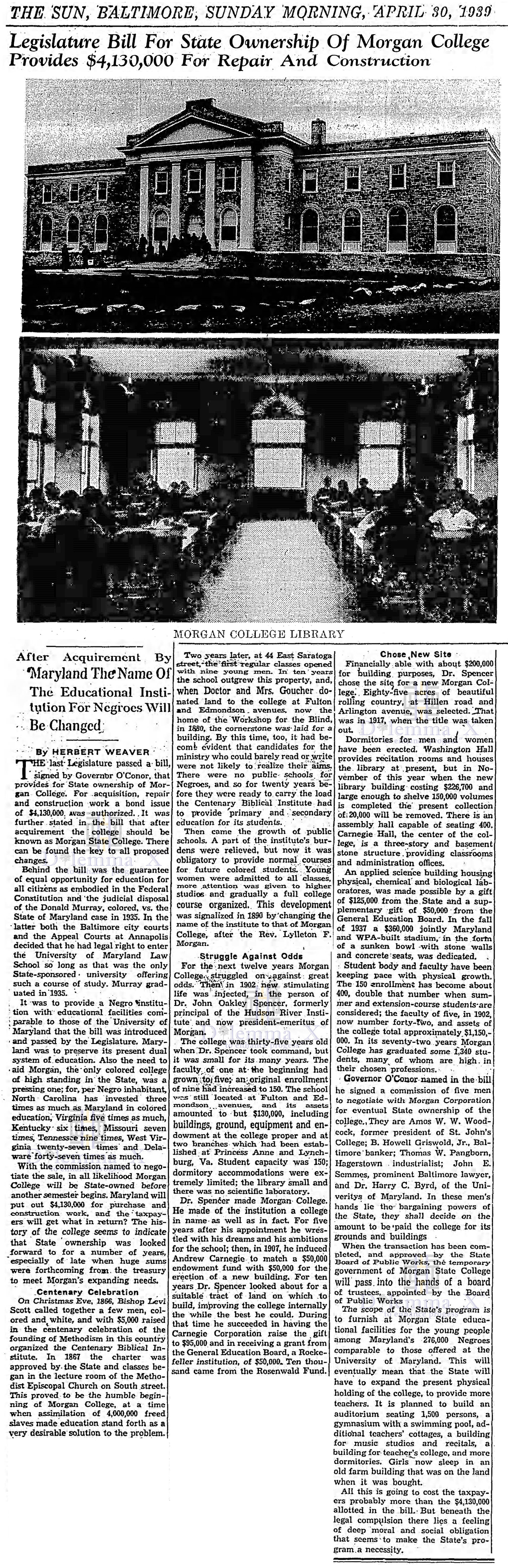 Morgan remained a private institution until 1939 when the state Maryland purchased the college and it became a public institution.
