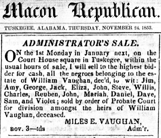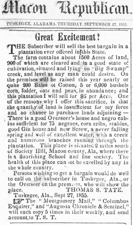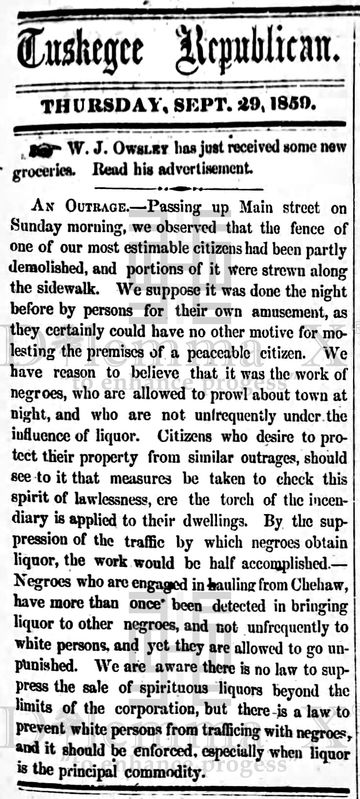 Below are a few historical newspaper articles showing how the press displayed life for African Americans within Tuskegee, Macon County and the United States. These articles depict factual conditions of enslaved Africans in the United States of America. It is important to never forget, to never stop telling and sharing the stories of the African American saga in America and the world.