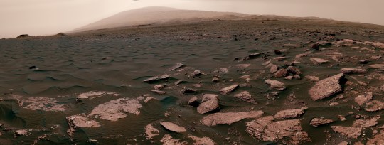 This 360-degree mosaic from the Mast Camera (Mastcam) on NASA’s Curiosity Mars rover looks out over a portion of the Bagnold Dunes, which stretch for several miles. From early February to early April 2017, the rover examined four sites near linear dunes for comparison with what it found in late 2015 and early 2016 during its investigation of crescent-shaped dunes. This two-phase campaign is the first close-up study of active dunes anywhere other than Earth.