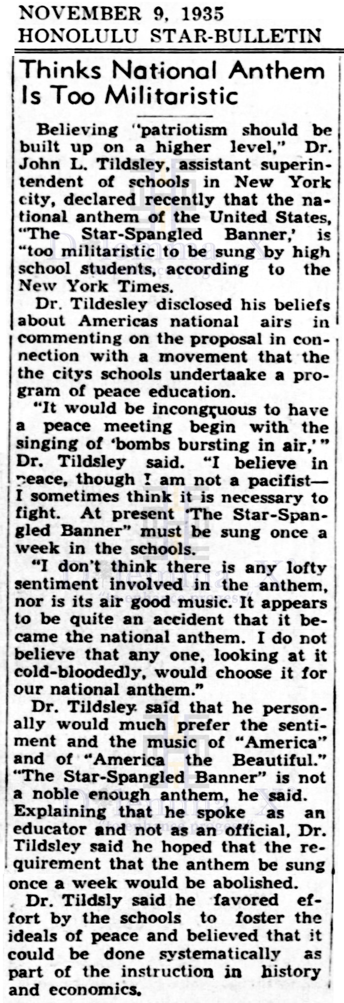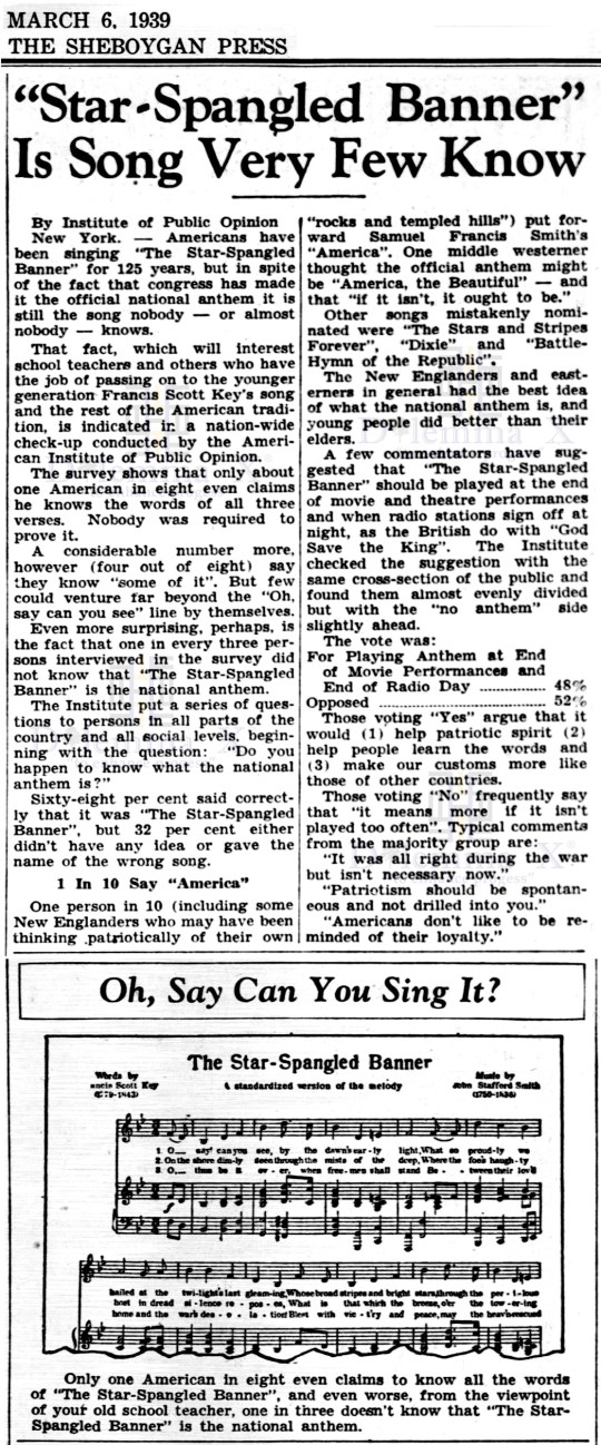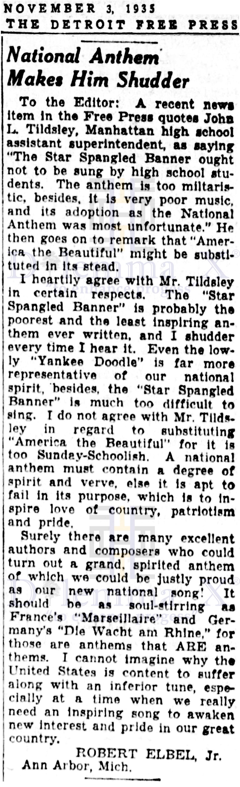 In many American newspapers the selection of “The Star-Spangled Banner”, as the National Anthem, did not make front page news. See the following link to view historical newspapers from 1931.