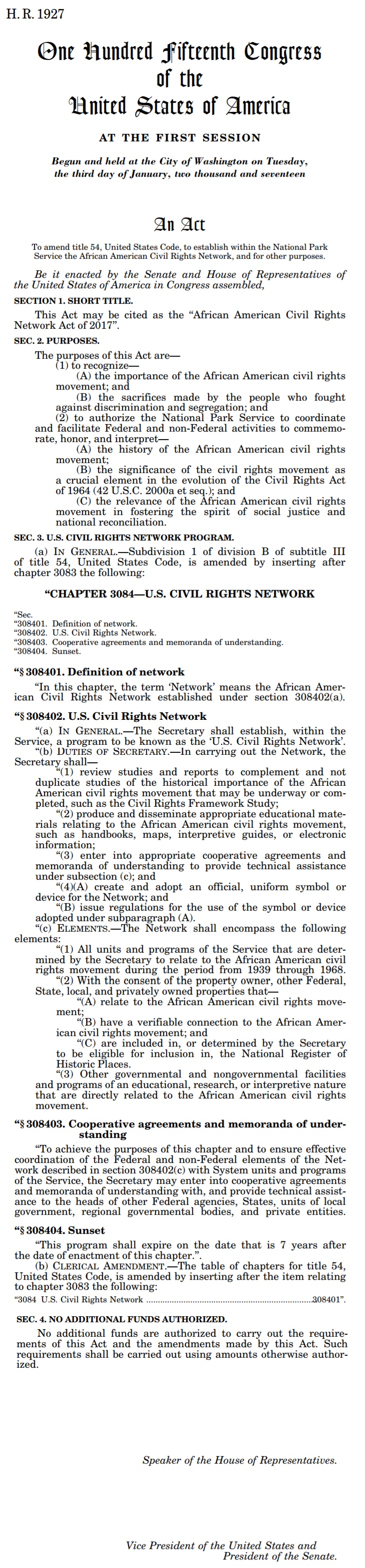 President Donald Trump signs the African American Civil Rights Network Act of 2017 into law