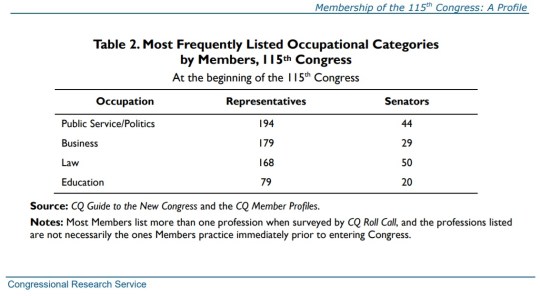 The dominant professions of Members are public service/politics, business, and law.