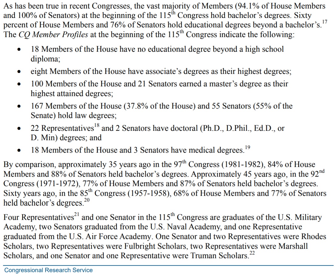 The overwhelming majority of Members of Congress have a college education.