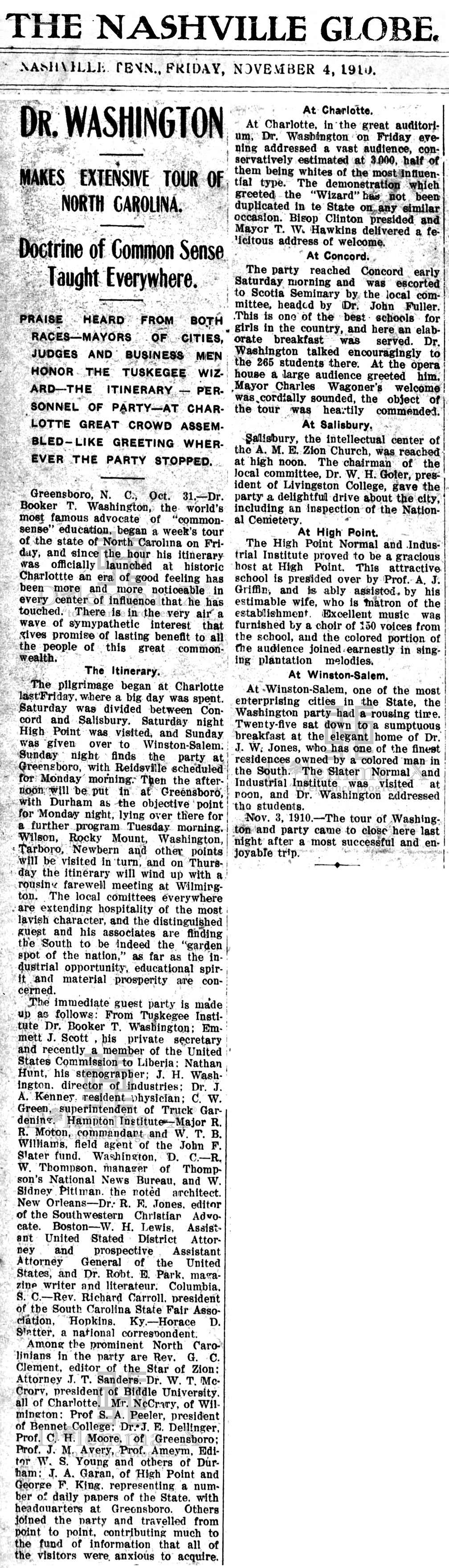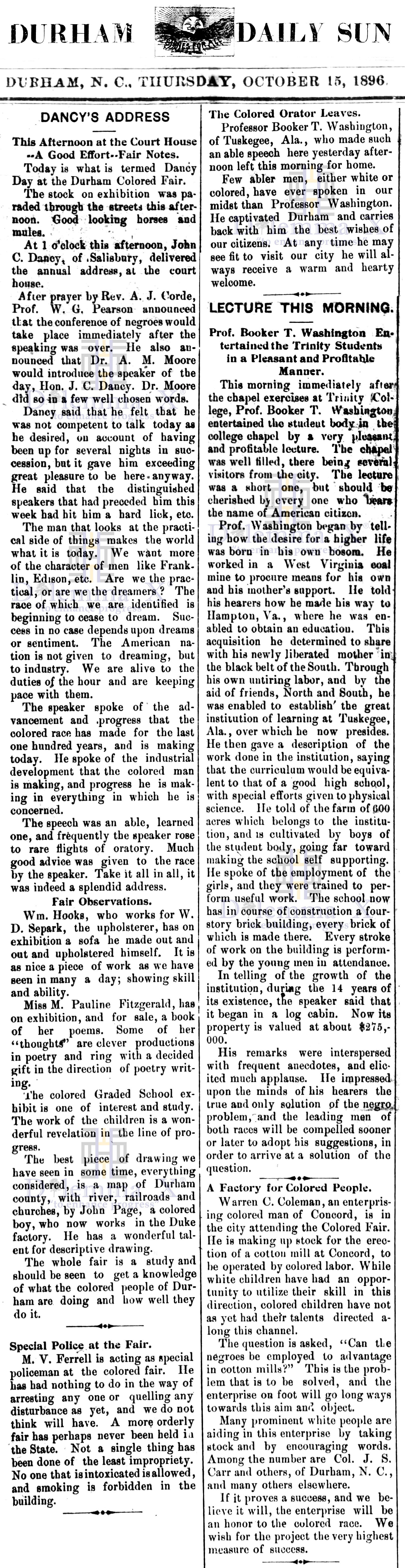 Booker T. Washington visited the 1896 Durham County Colored Fair and later visited North Carolina in 1910.