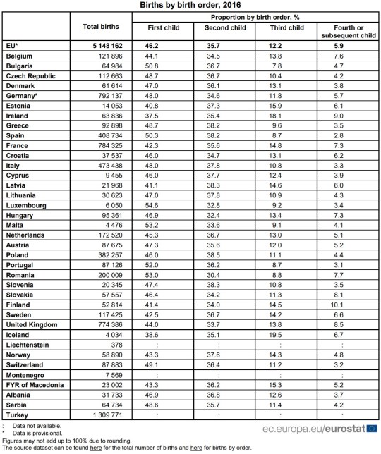- Among the 5.148 million births in the EU in 2016, nearly 1 in 5 (or almost 930 000) concerned a third or subsequent child.