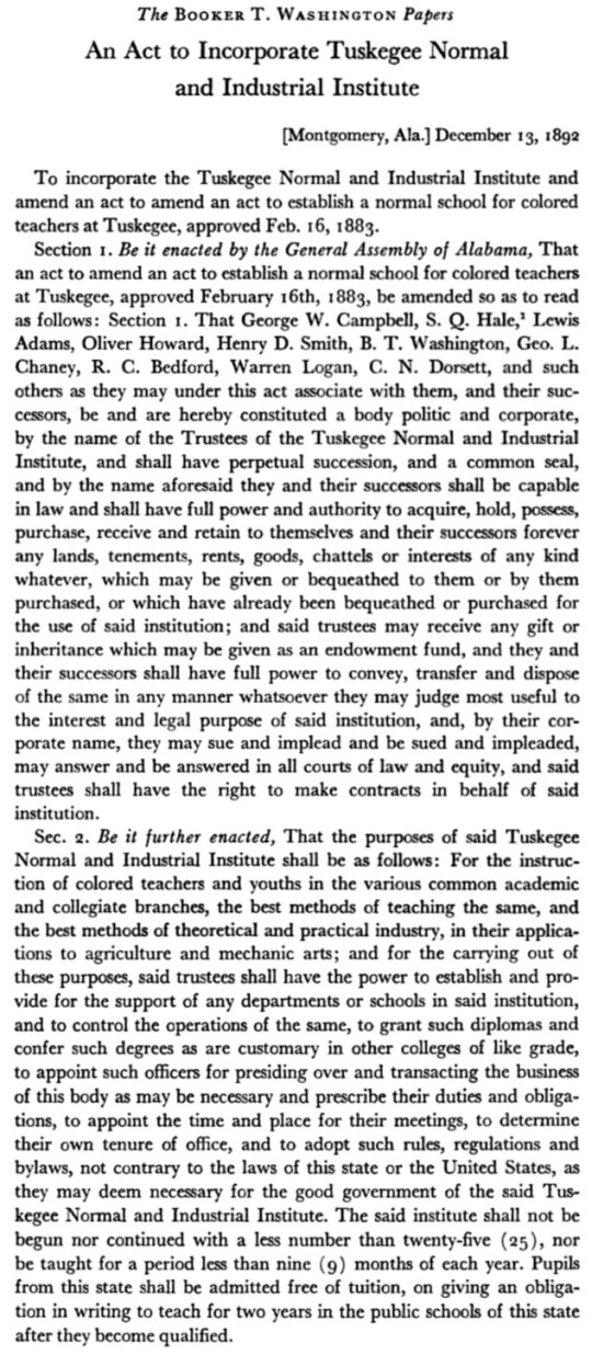 Tuskegee receives Land Grant status – today the nation’s only private and state-related HBCUs that is a land grant institution, similar to the conditions of Cornell University