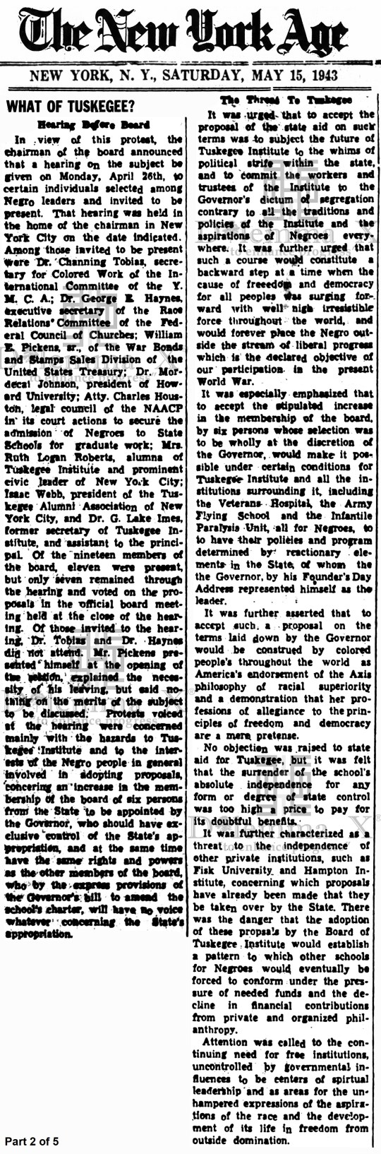 In 1942, Tuskegee had the second largest student enrollment of the colleges founded to educate African Americans