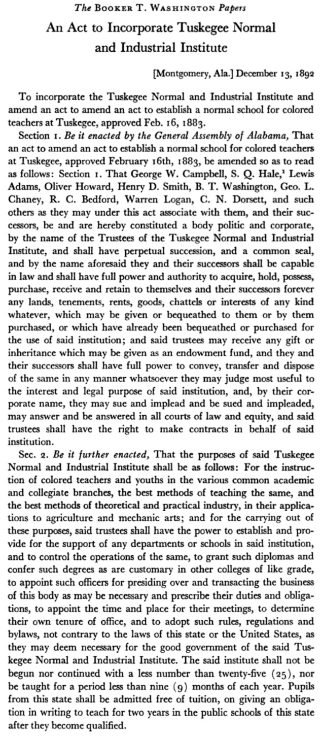 Tuskegee receives Land Grant status – today the nation’s only private and state-related HBCUs that is a land grant institution, similar to the conditions of Cornell University