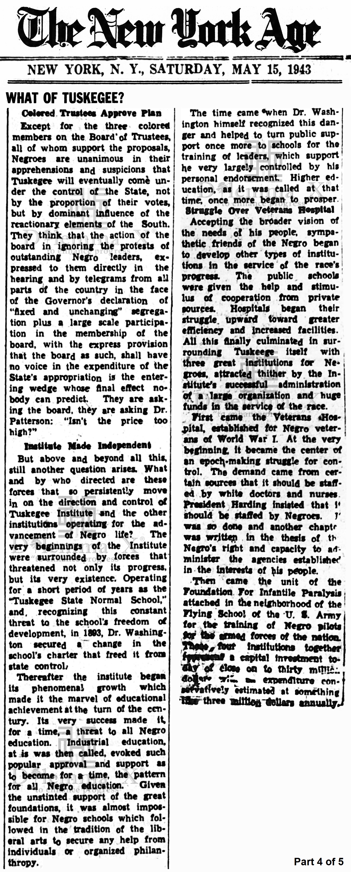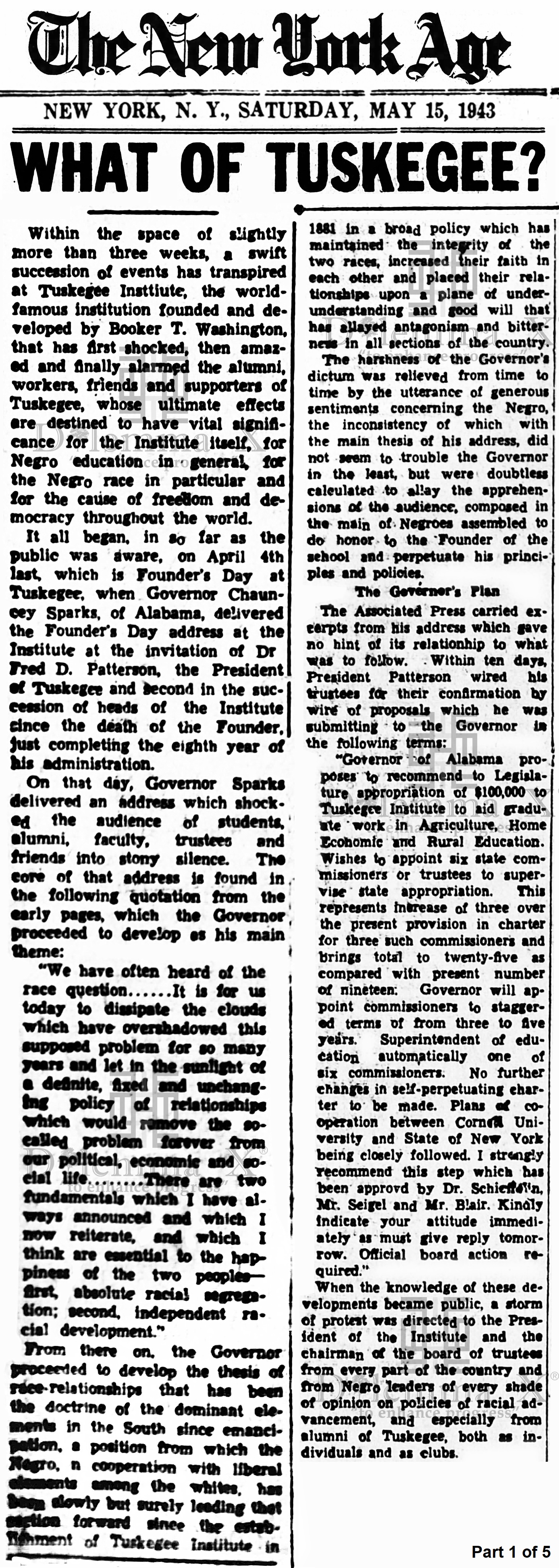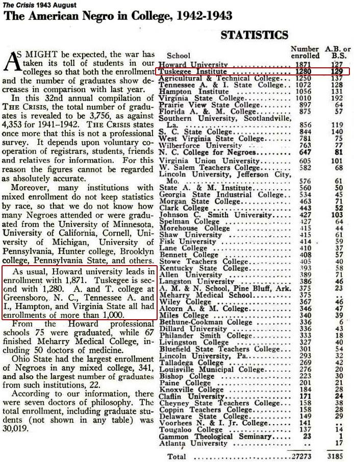In 1942, Tuskegee had the second largest student enrollment of the colleges founded to educate African Americans