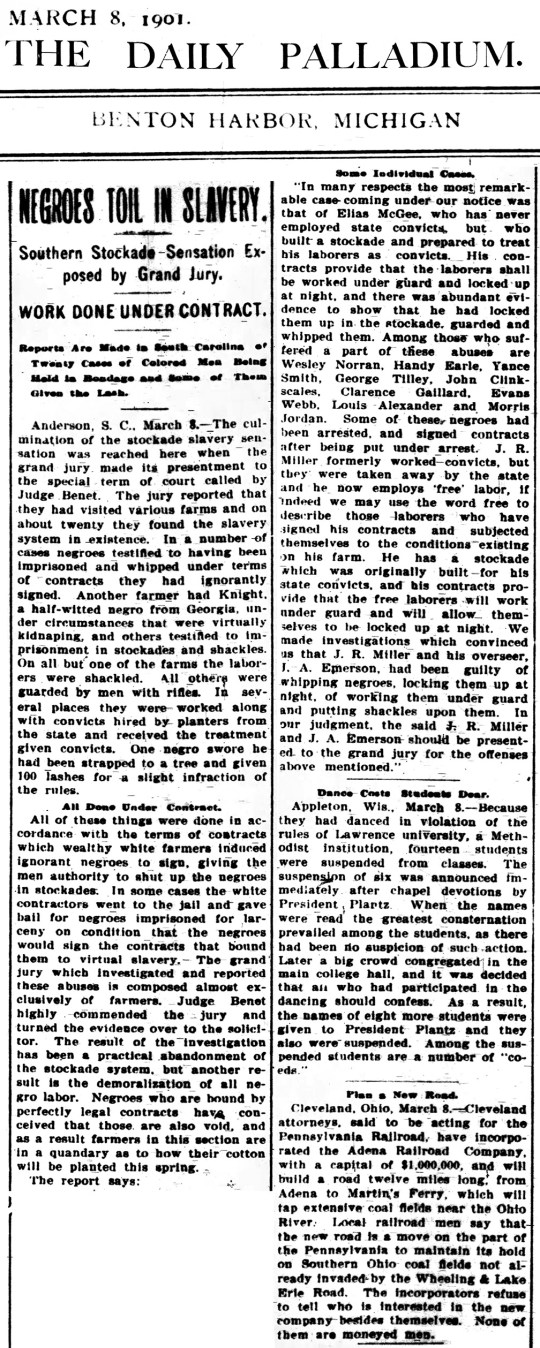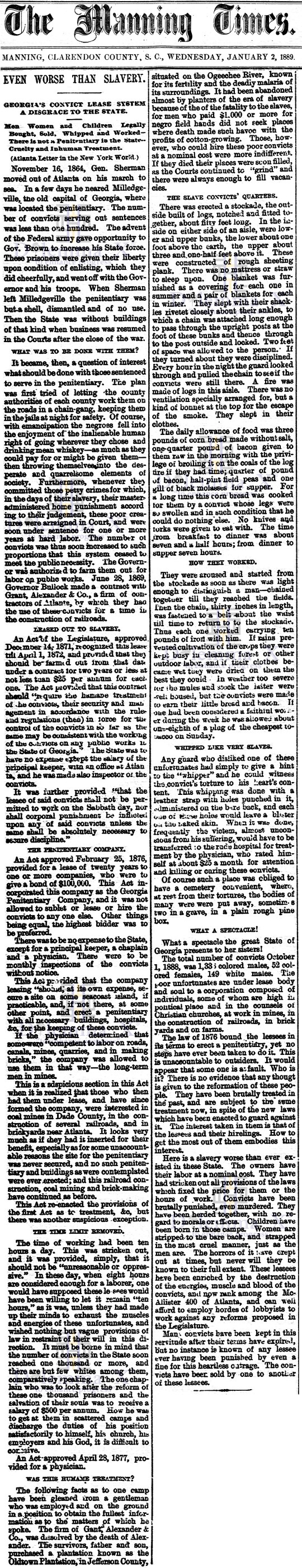 These few examples of historical newspaper articles explains the new system of enslaving African Americans in the United State of America after 1865.