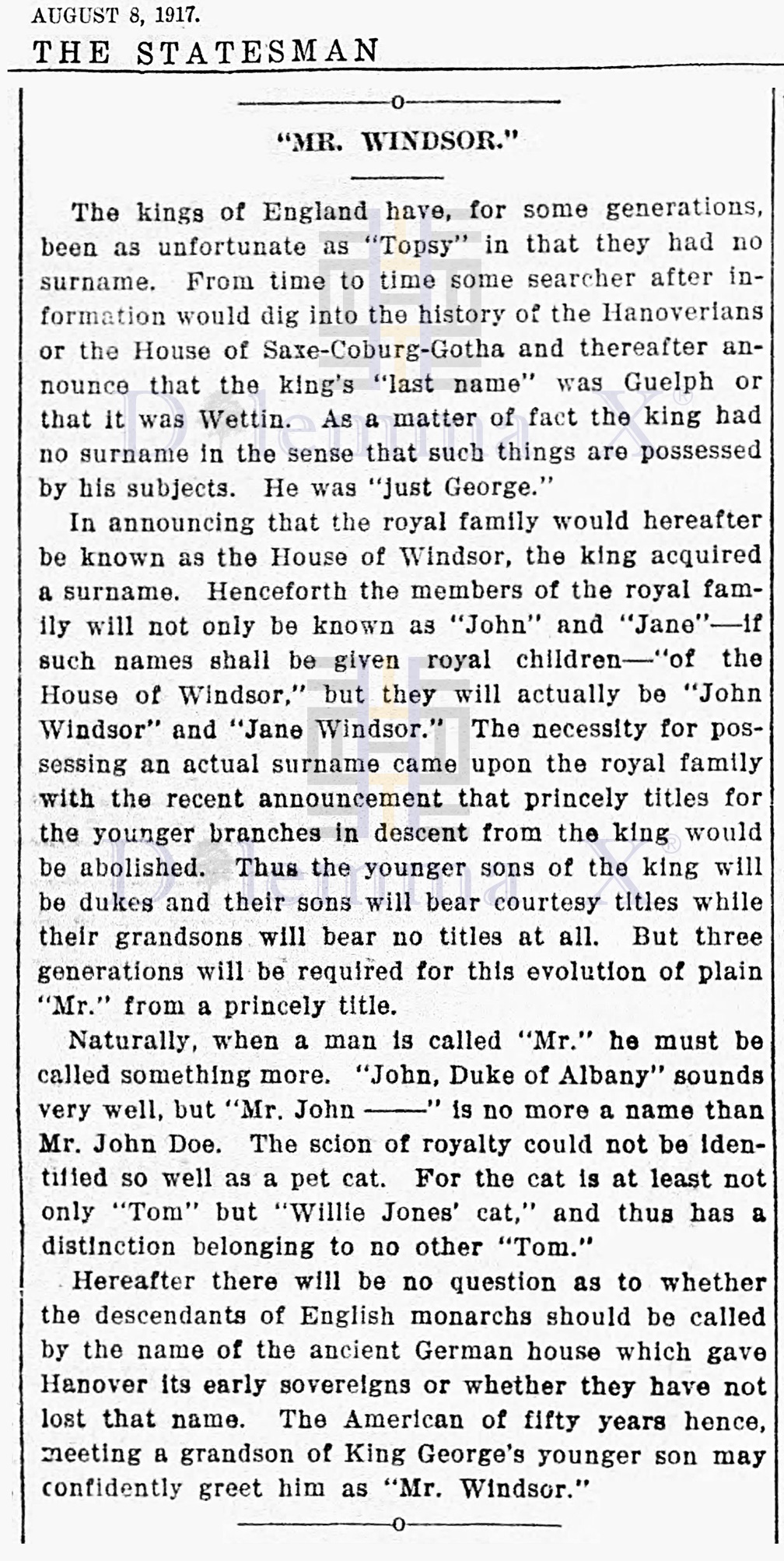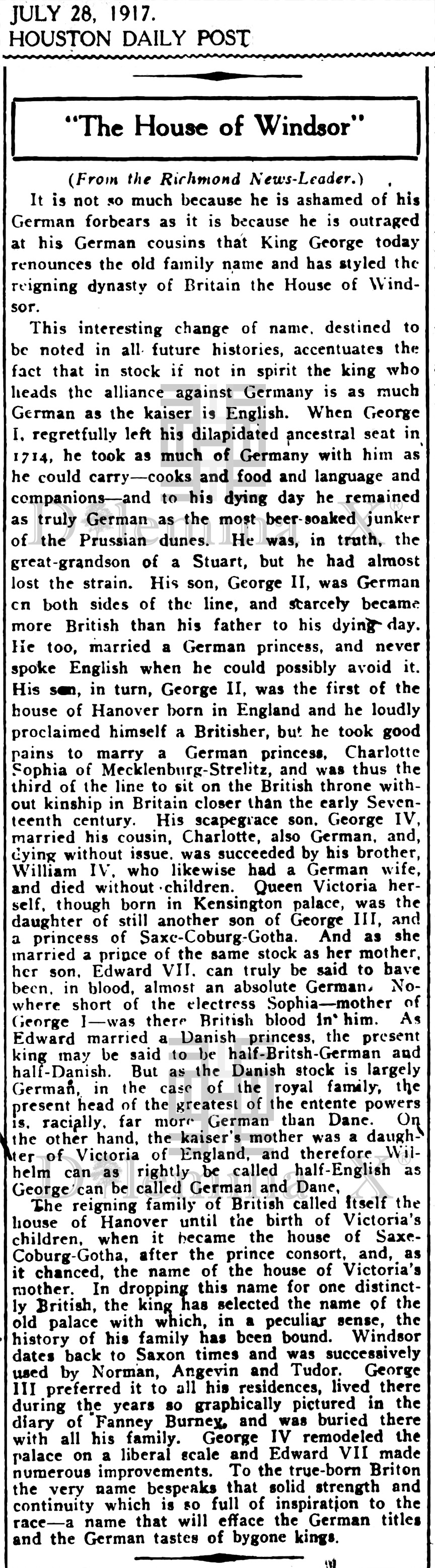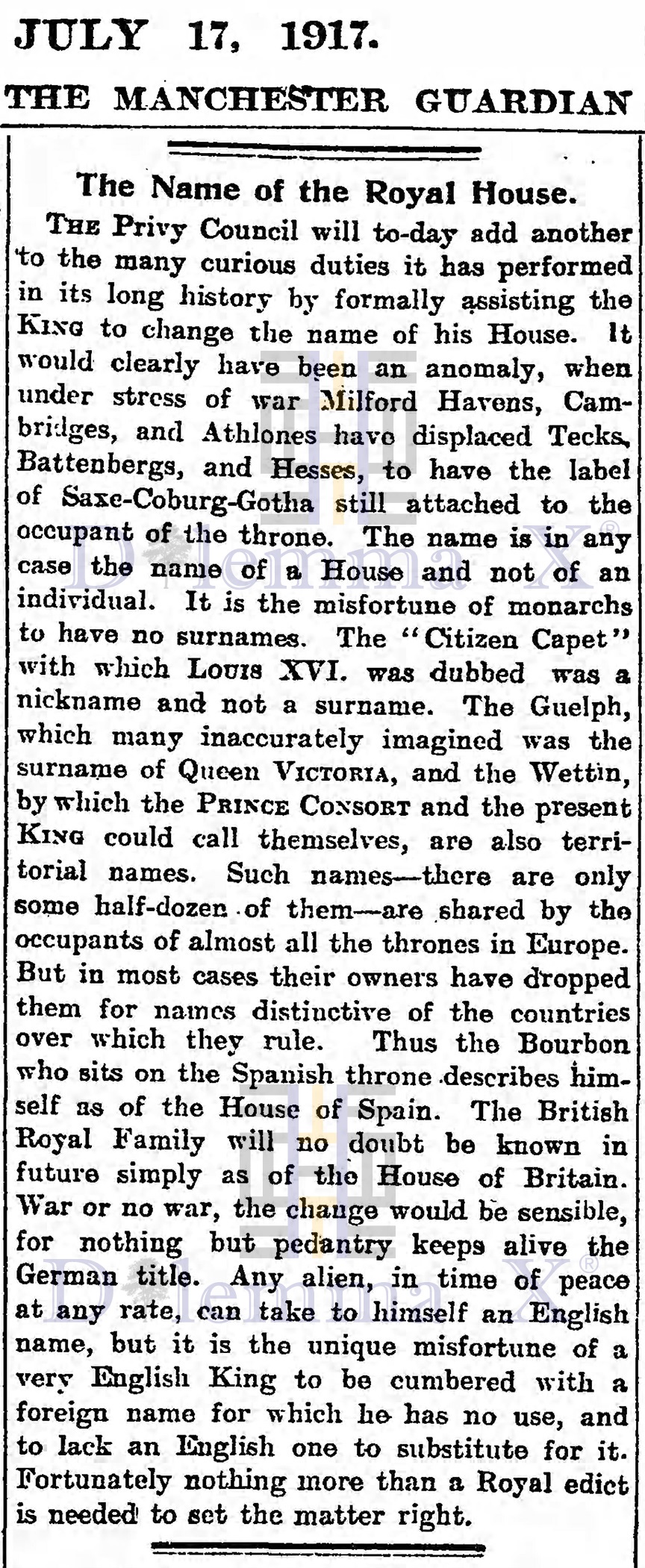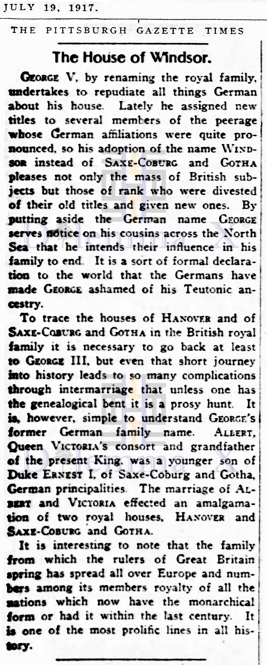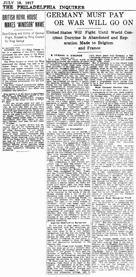 Remember Yesteryear: 1917 The year when United Kingdom’s German royal family became British