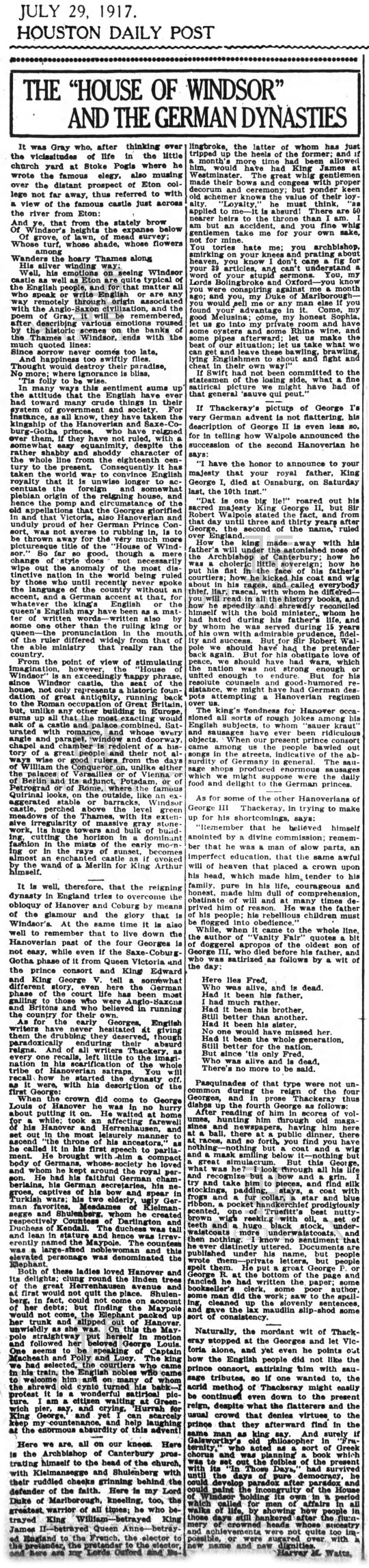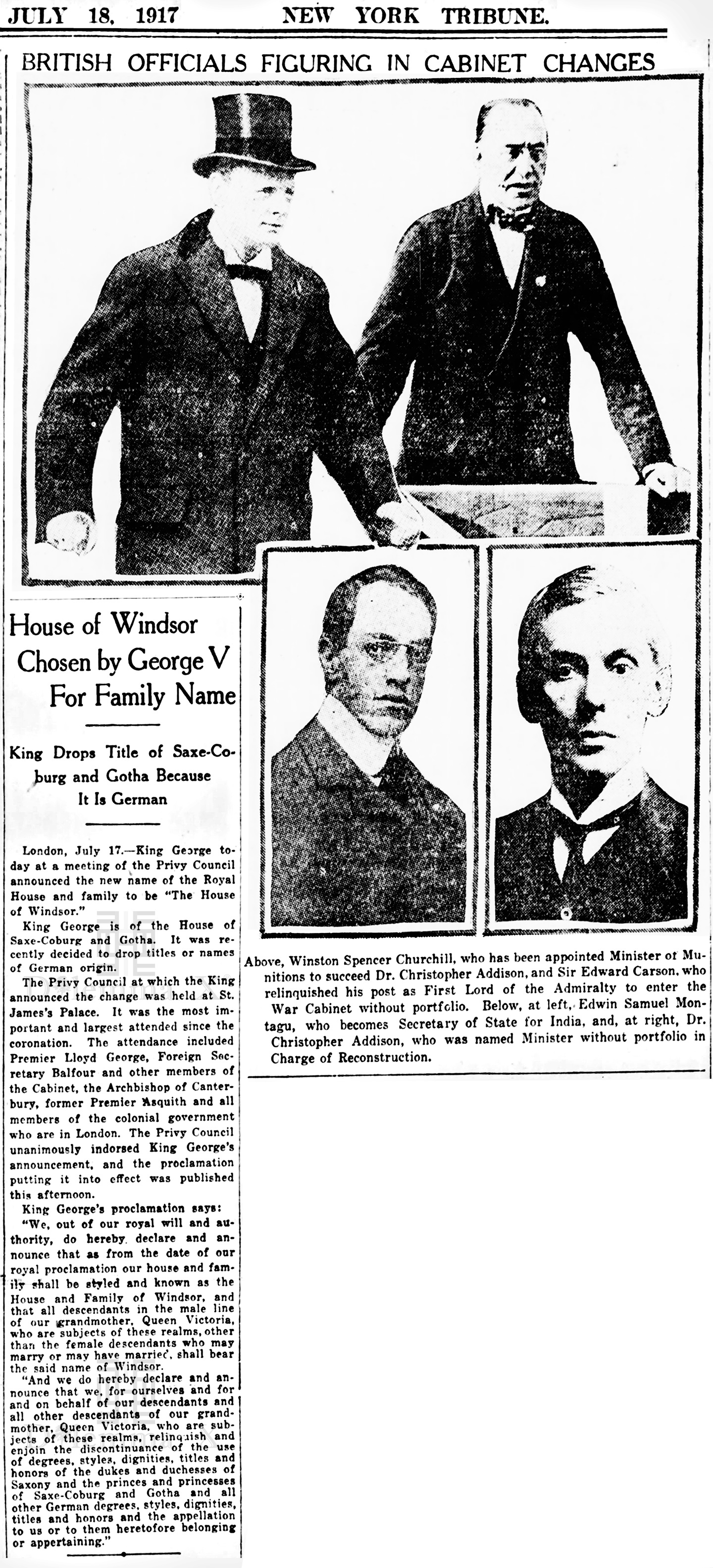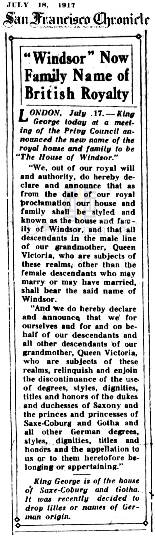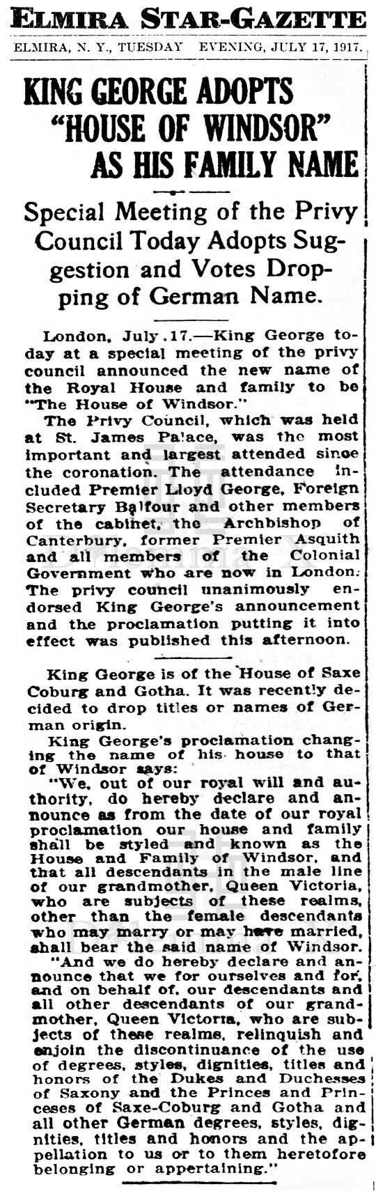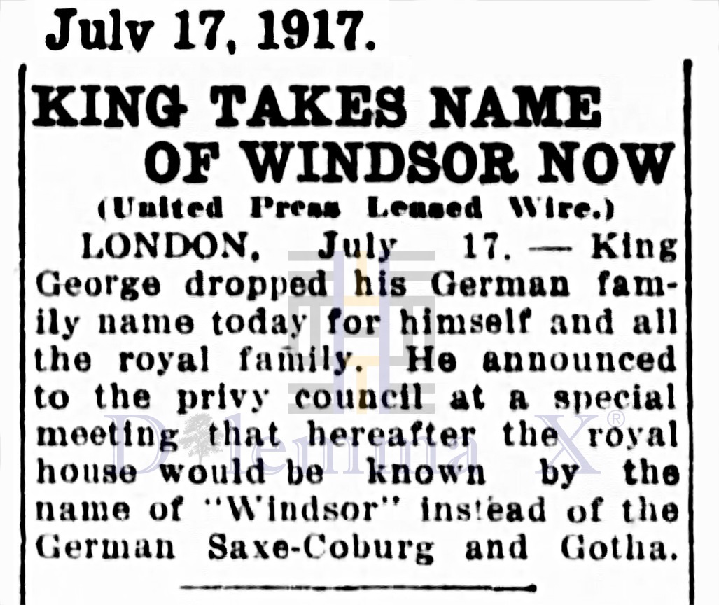 1917 The German Royals become British