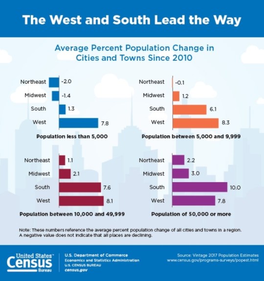 Eight of the 15 cities or towns with the largest population gains were located in the South in 2017, with three of the top five in Texas, according to new population estimates released today by the U.S. Census Bureau.