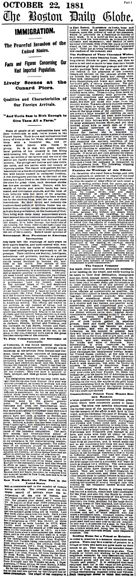 Below are just a few examples of how the U.S. media discussed the topic of immigration in the 1800s and early 1900s.