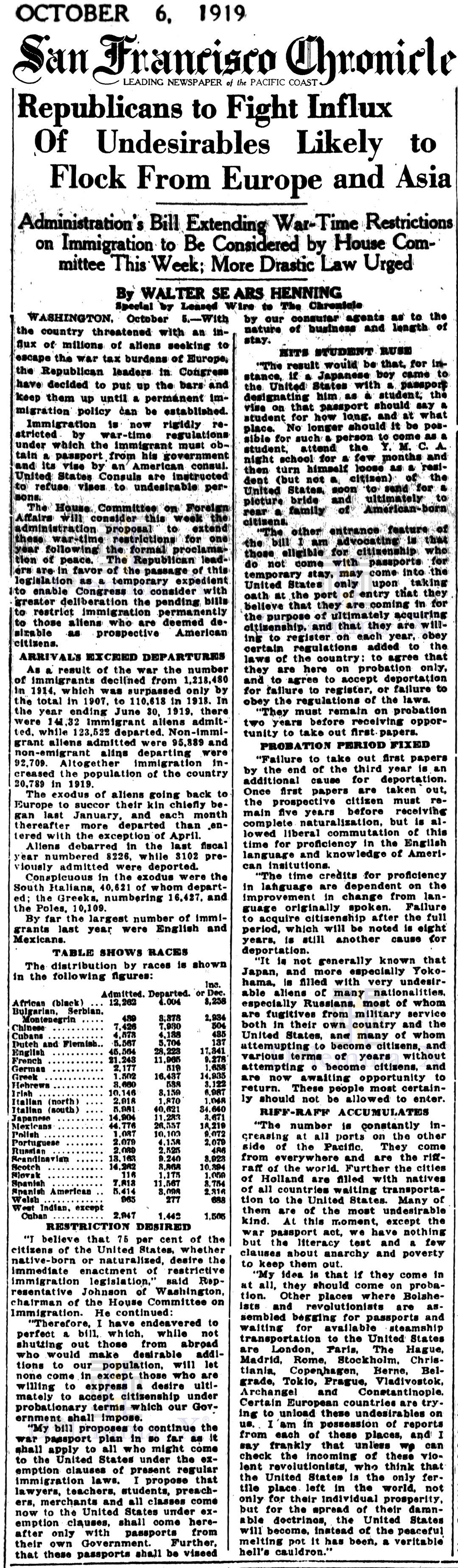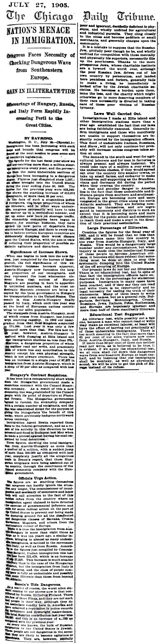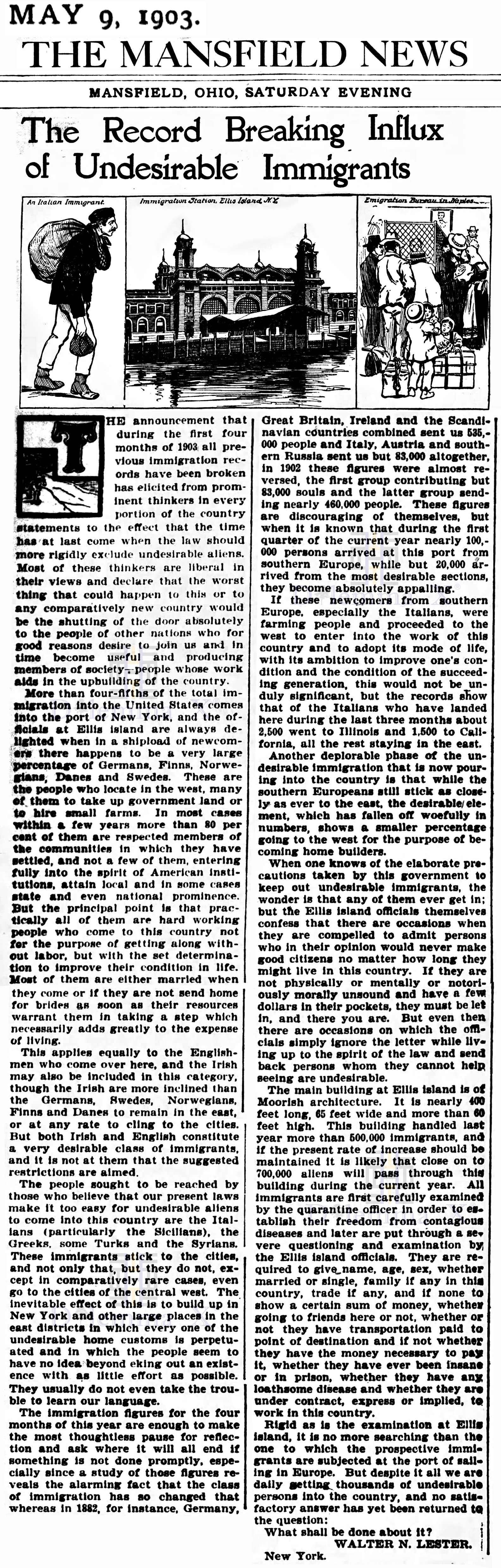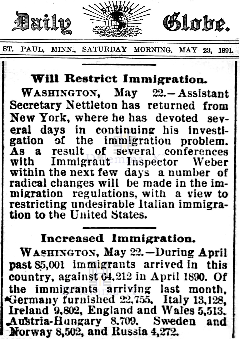 Immigration: The U.S. once viewed Europeans who were non-British as undesirables in the 1880s and early 1900s
