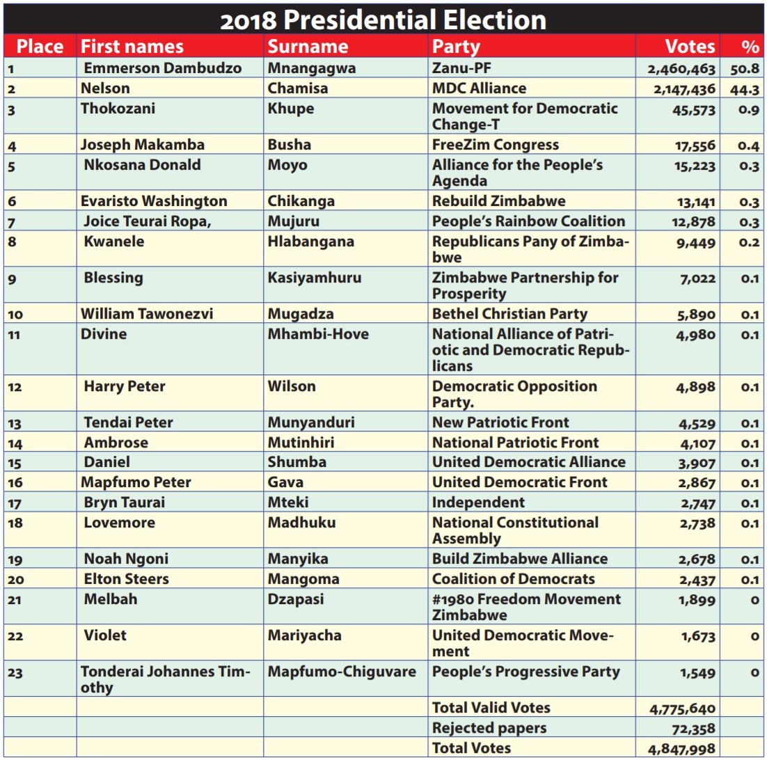 Dambudzo Mnangagwa of ZANU-PF 2,460,463 votes
