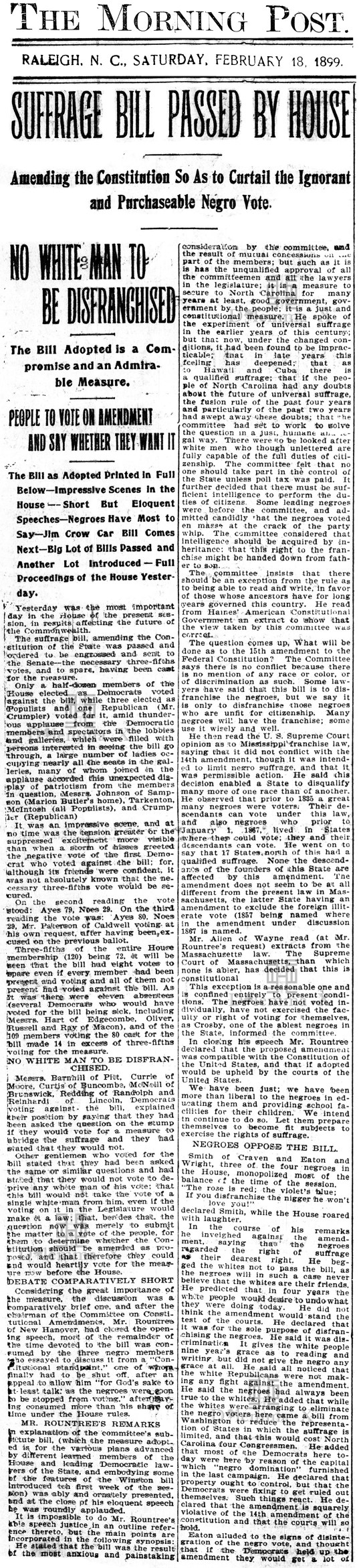 Historical Flashback: 1900 A look back at the disenfranchisement of African Americans in North Carolina.