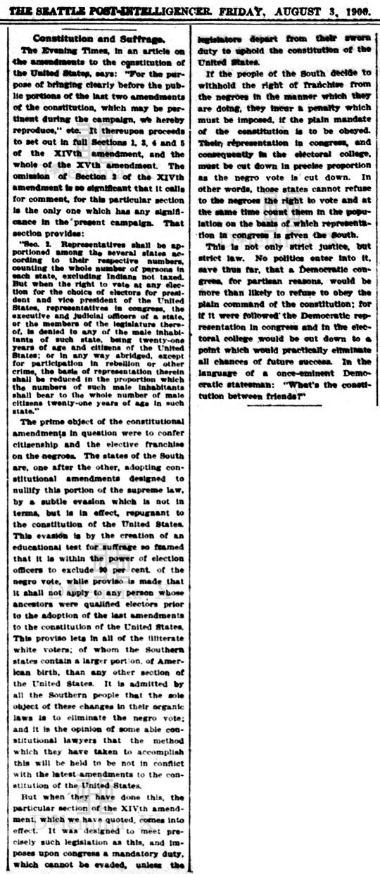 Between 1890 and 1908, every state in the Deep South adopted a new state constitution, explicitly for the purpose of disenfranchising African Americans.