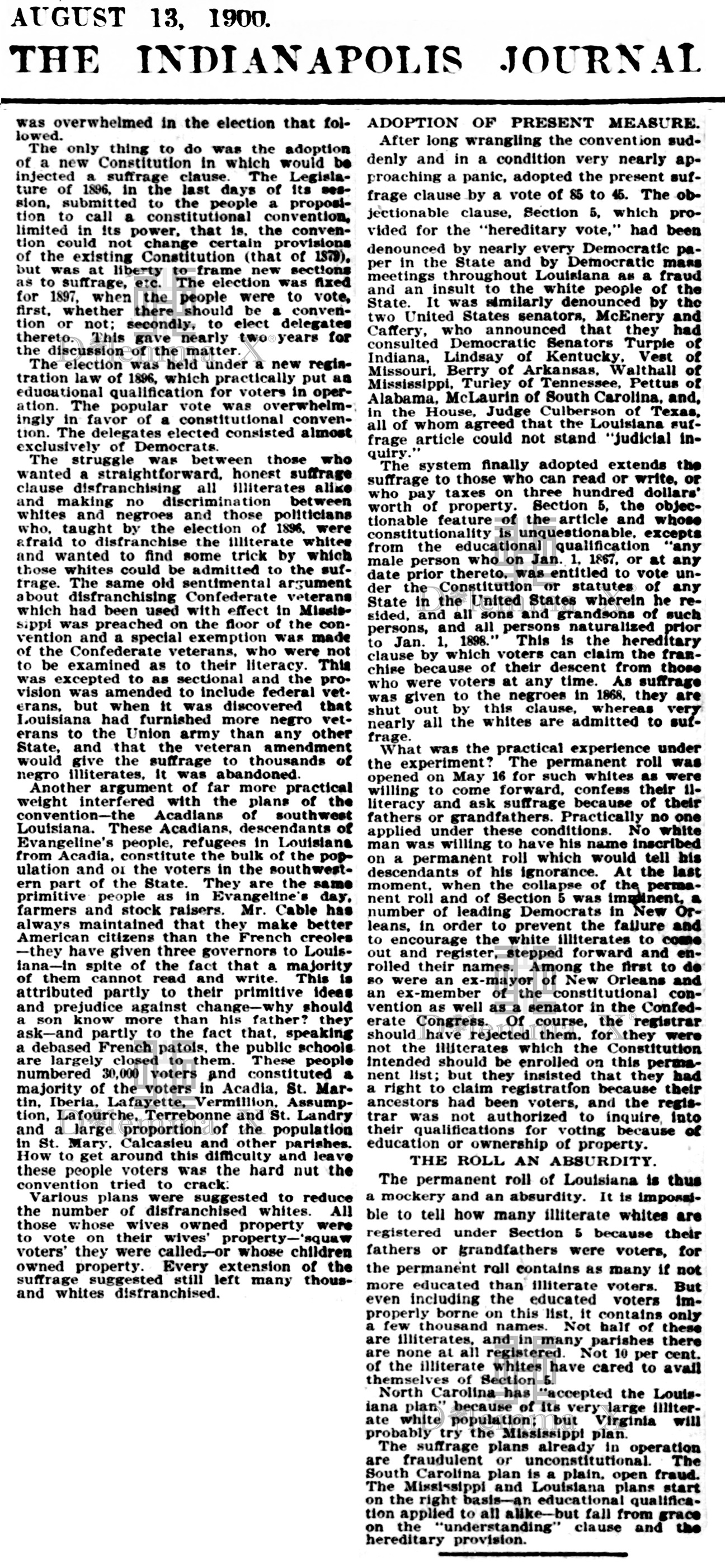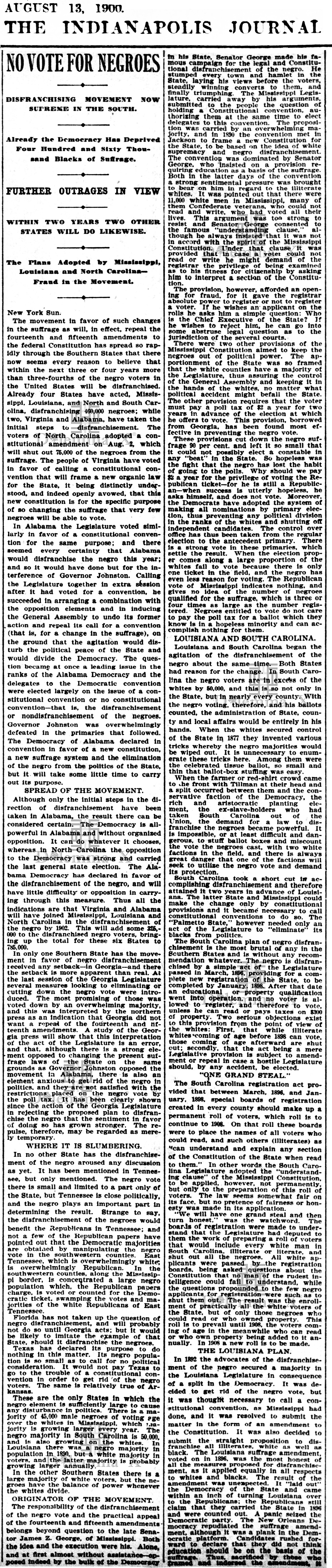 August 13, 1900 A view from Indianapolis – “No Vote For Negroes”