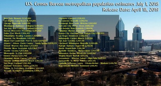 U.S. Census Bureau metropolitan population estimates July 1, 2018 –Release Date: April 18, 2019