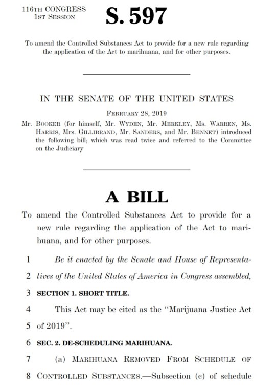 U.S. Senate Bill: S.597 Marijuana Justice Act of 2019