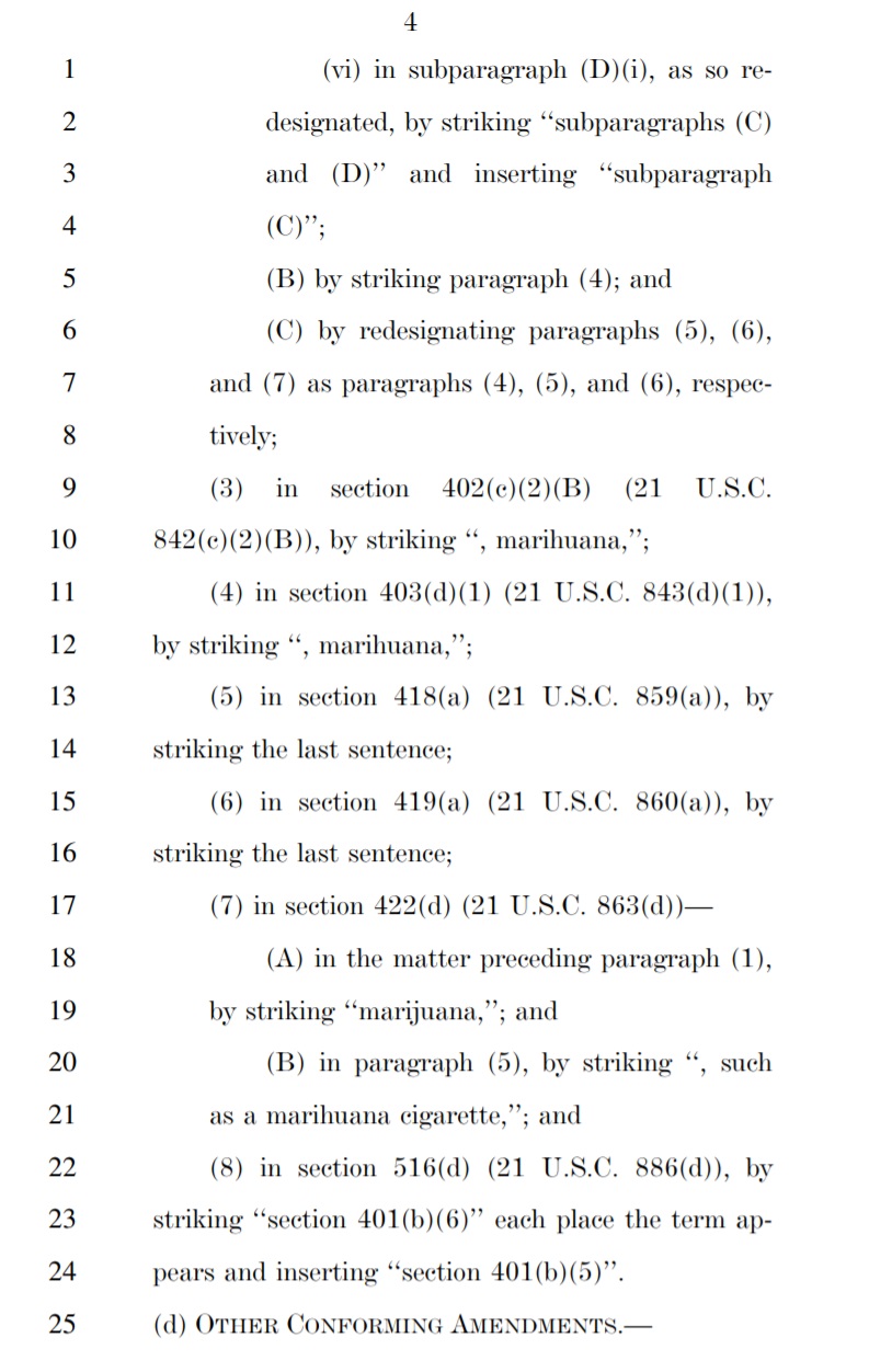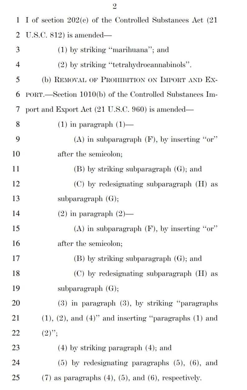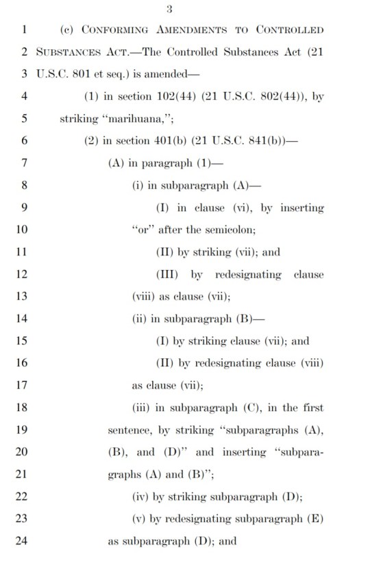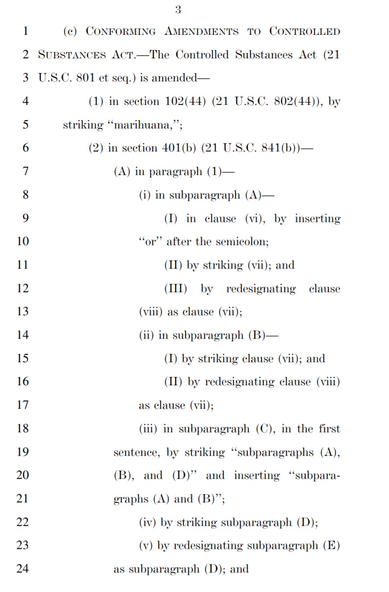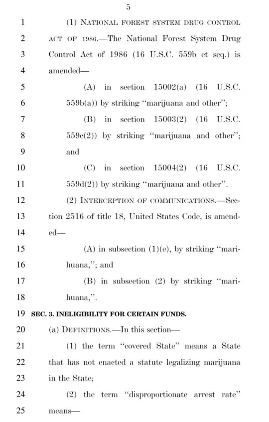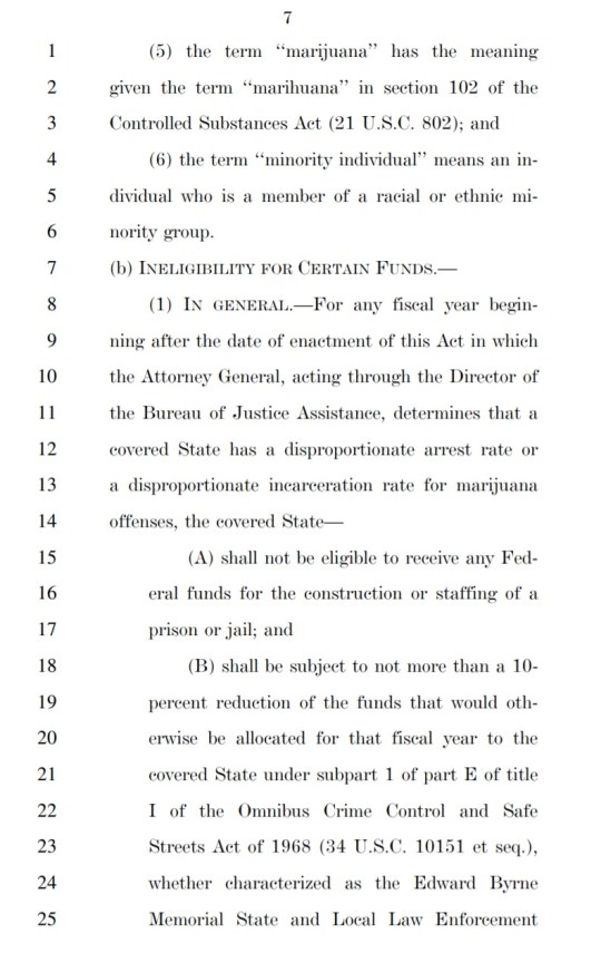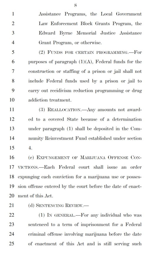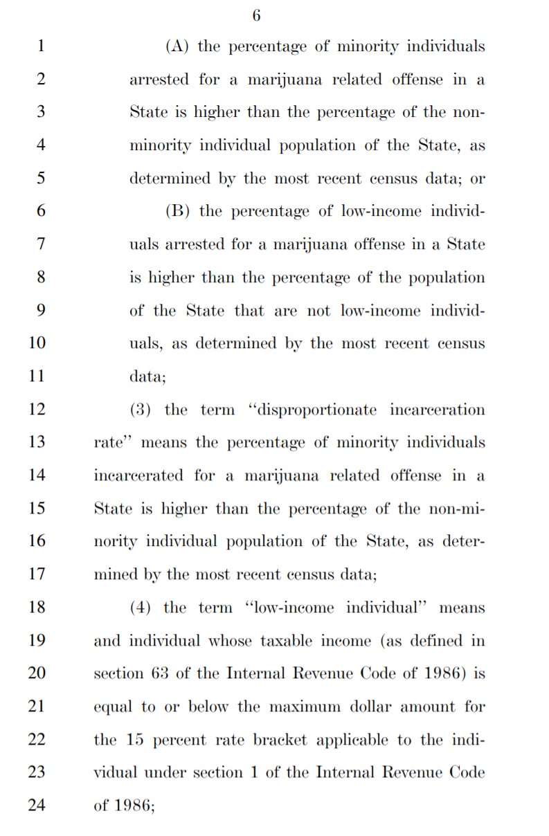The bill would also incentivize states through the use of federal funds to change their marijuana laws if those laws were shown to have a disproportionate effect on low-income individuals and/or people of color.