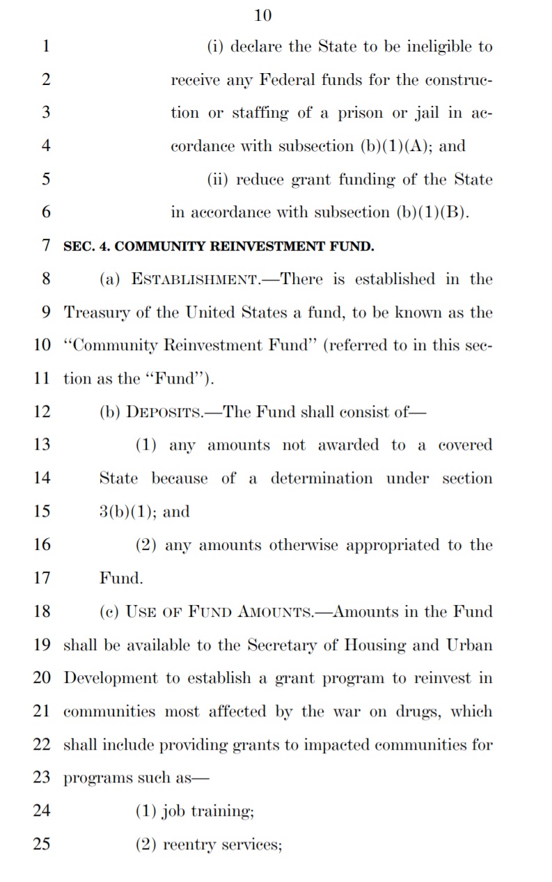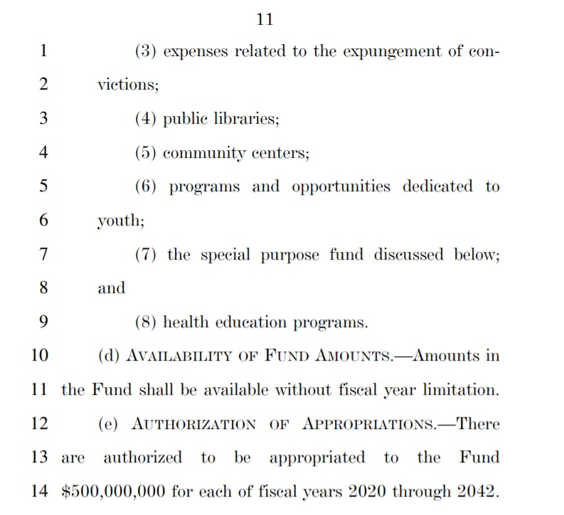 The Marijuana Justice Act seeks to reverse decades of failed drug policy that has disproportionately impacted low-income communities and communities of color. Beyond removing marijuana from the list of controlled substances – making it legal at the federal level – the bill would also automatically expunge the convictions of those who have served federal time for marijuana use and possession offenses, and it would reinvest in the communities most impacted by the failed War on Drugs through a community fund. This community reinvestment fund could be used for projects such as job training programs, re-entry services, and community centers.