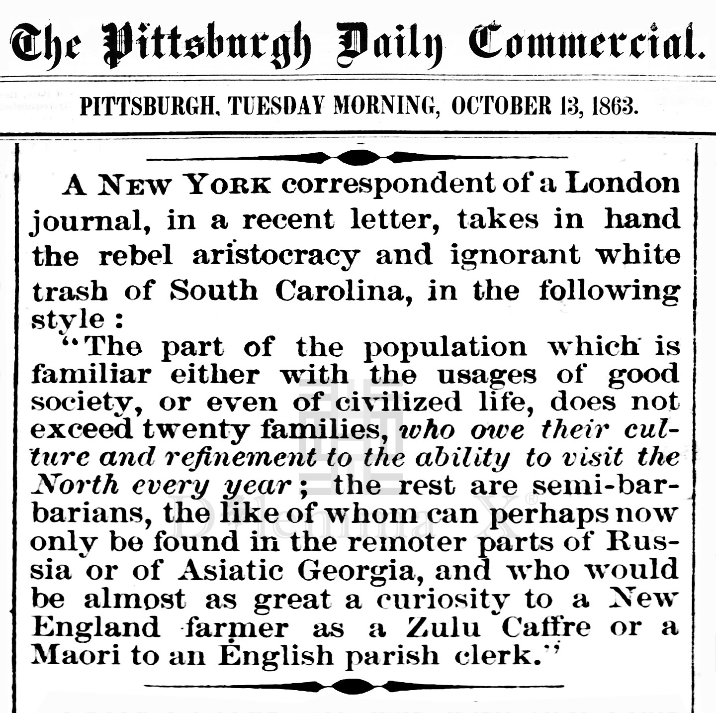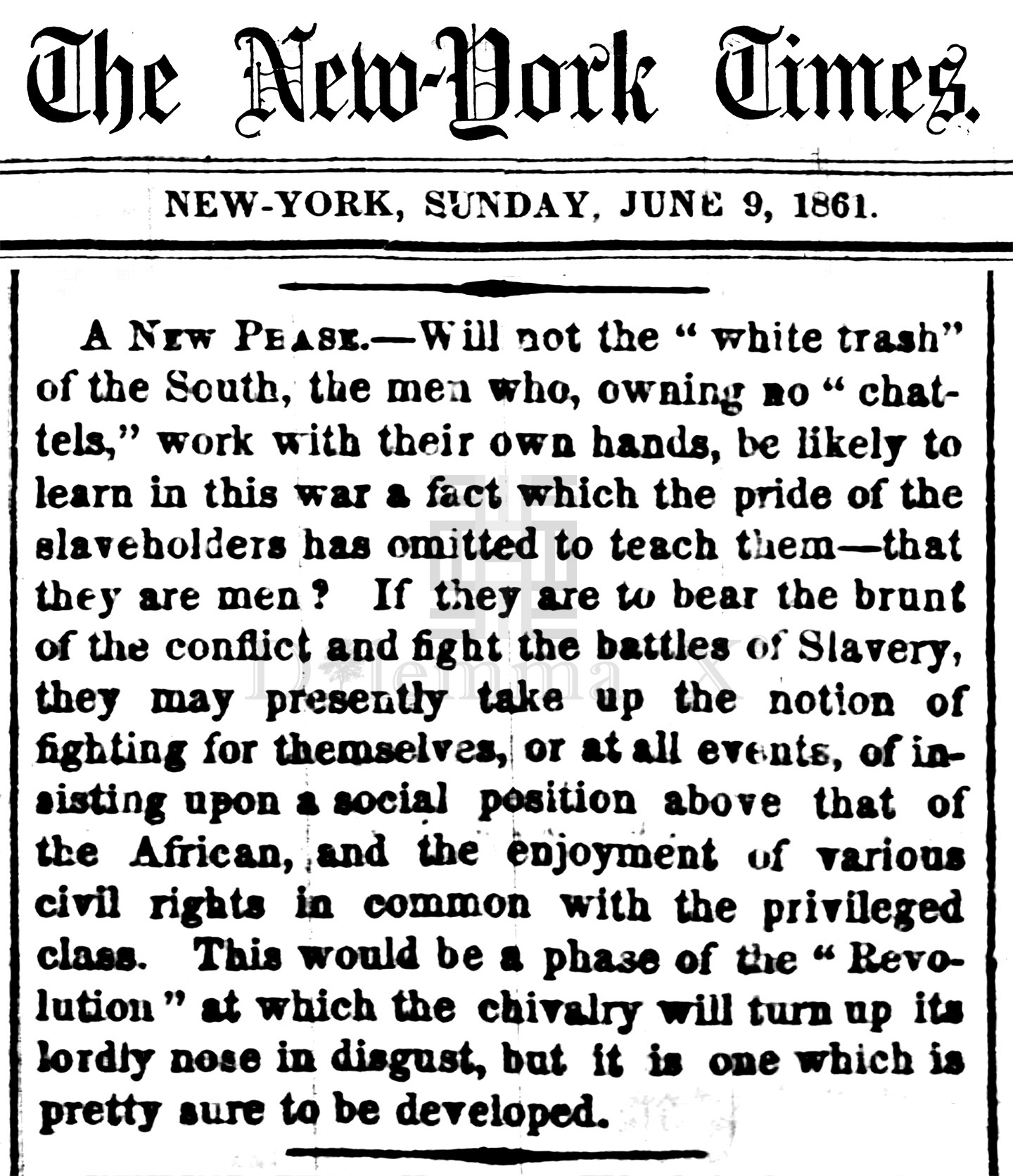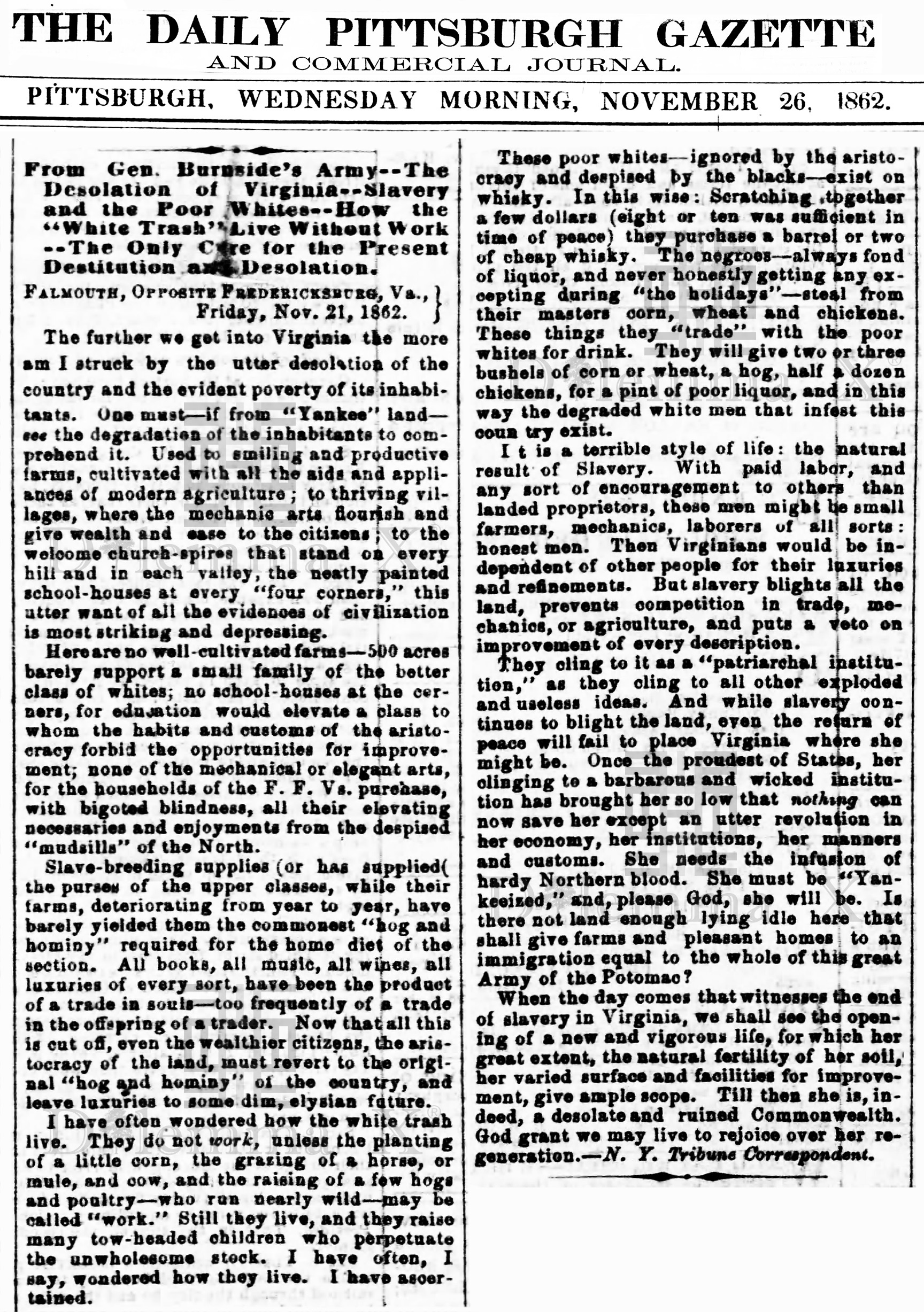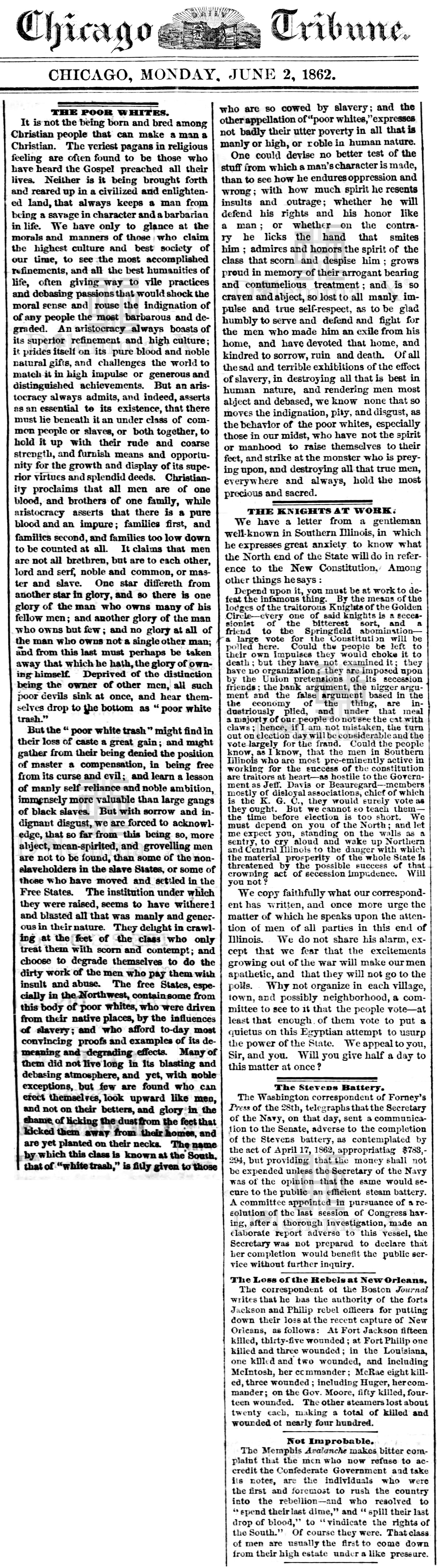 During the Civil War these historical newspaper articles expose how poor whites in the South were used as pawns to protect Southern aristocratic white wealth. The term “white trash” is the common term used in the press during the Civil War.