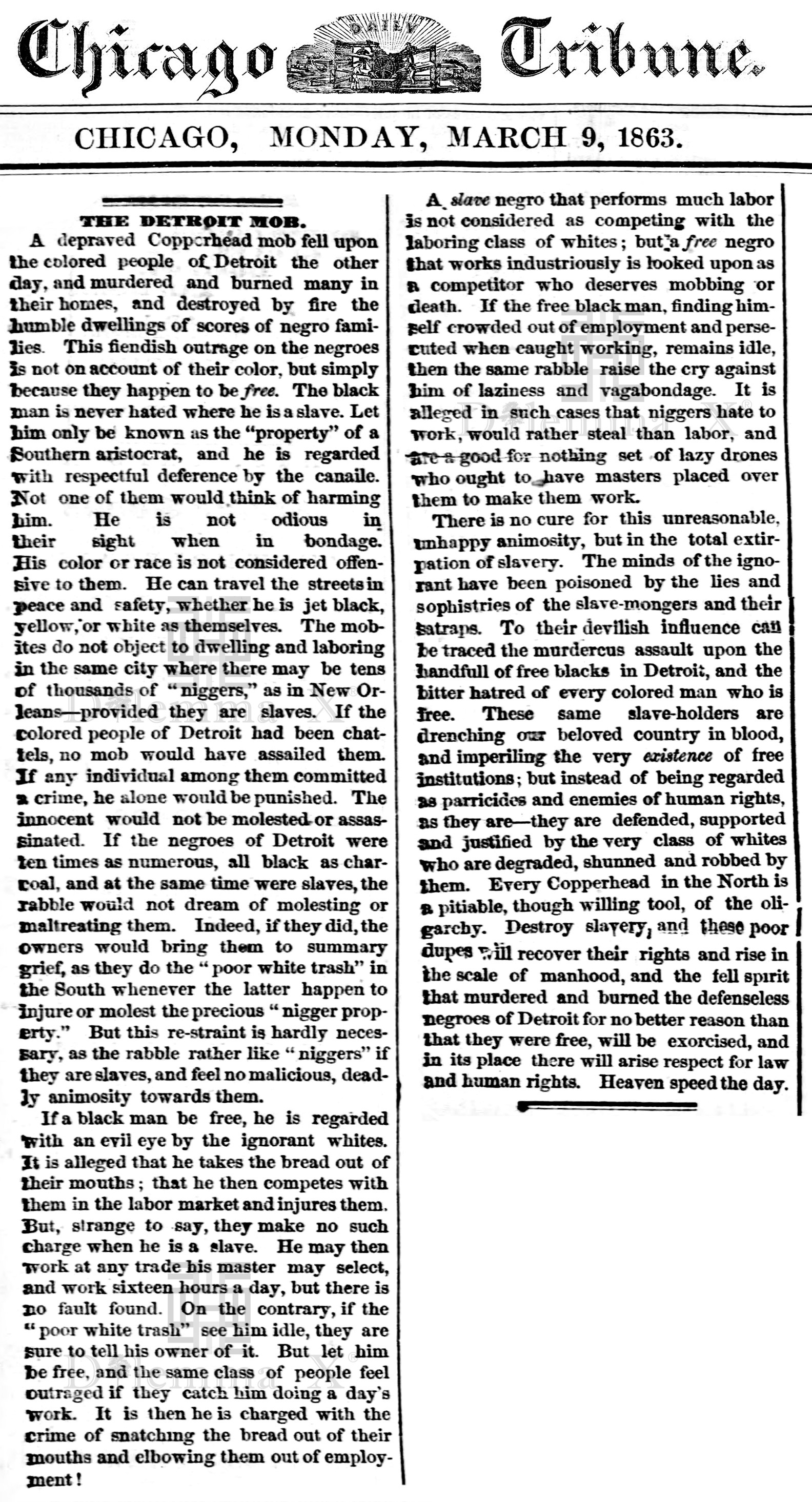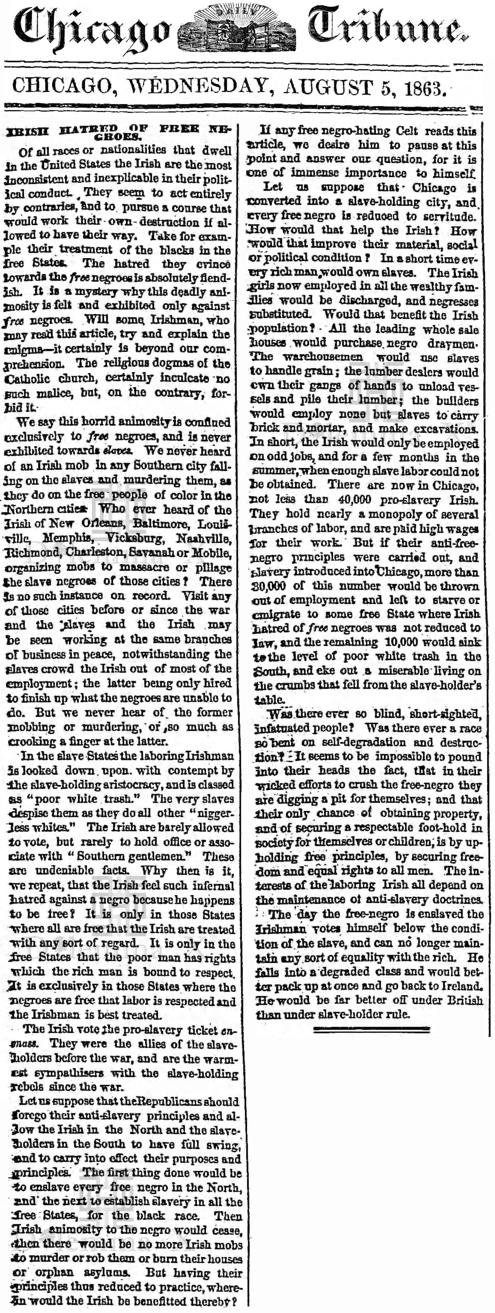 August 1863 Irish Americans hatred of free African Americans