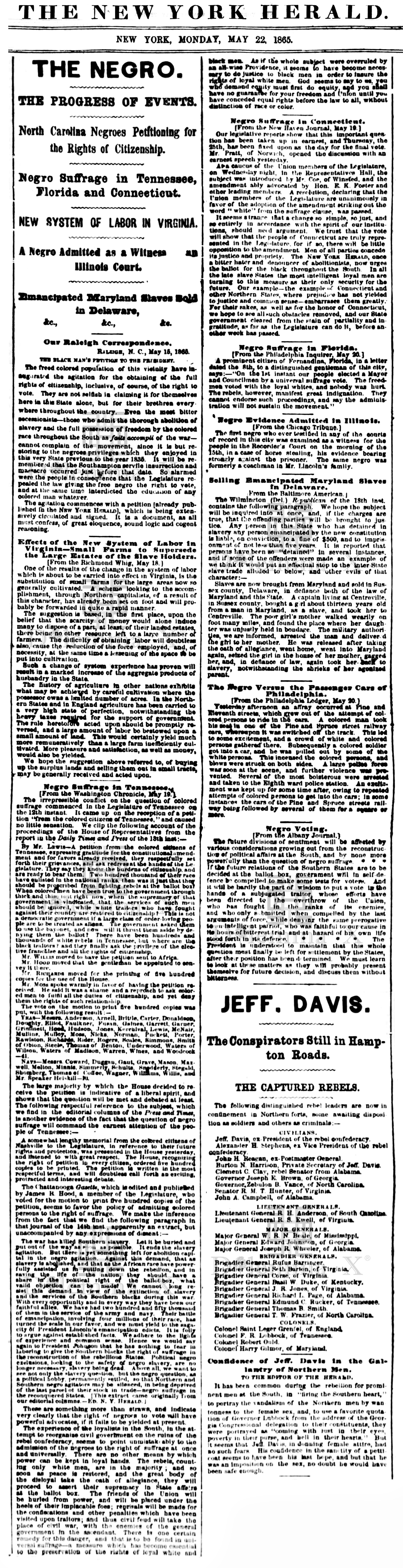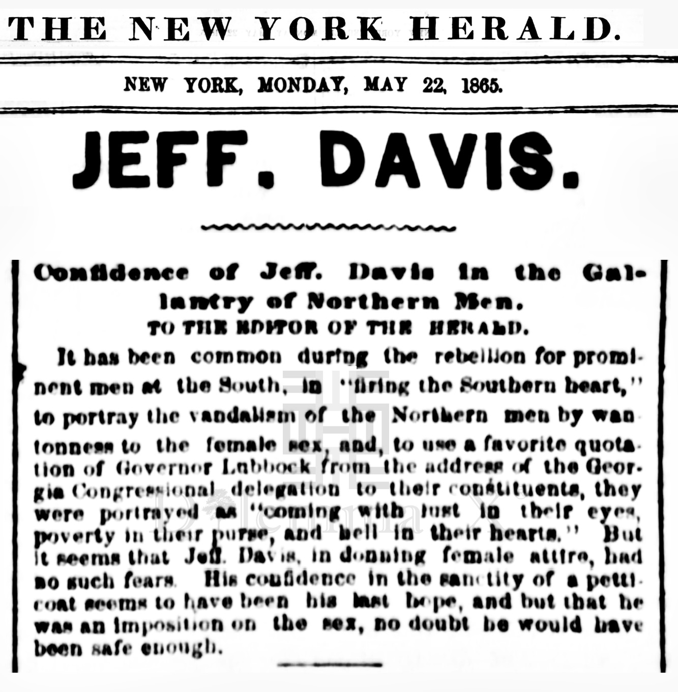 May 1865 – Jefferson Davis is reported dressing like a woman when captured