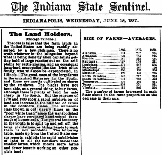 June 1887 Whites in the South buy the land