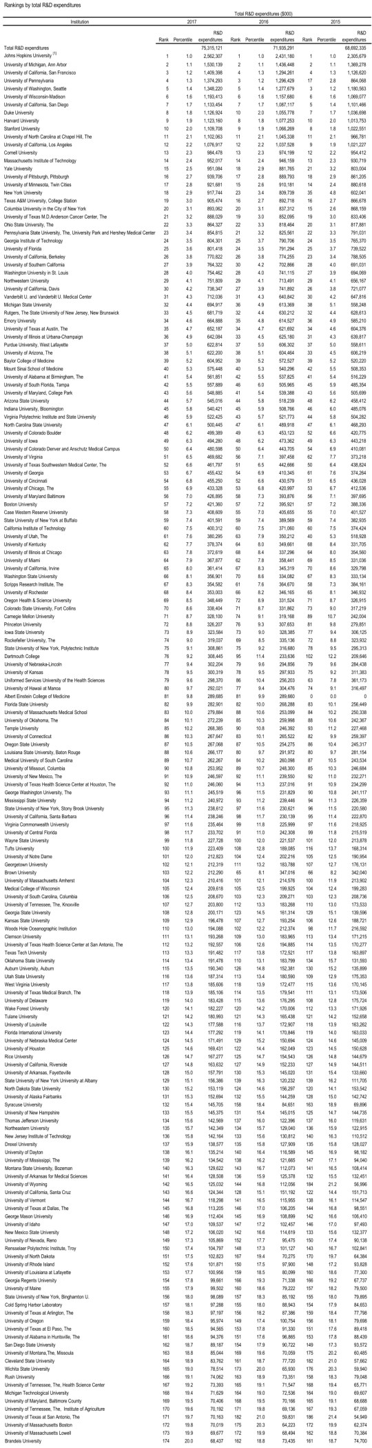 R&D Expenditures Rankings 2008 to 2017 – Click to view pdf document