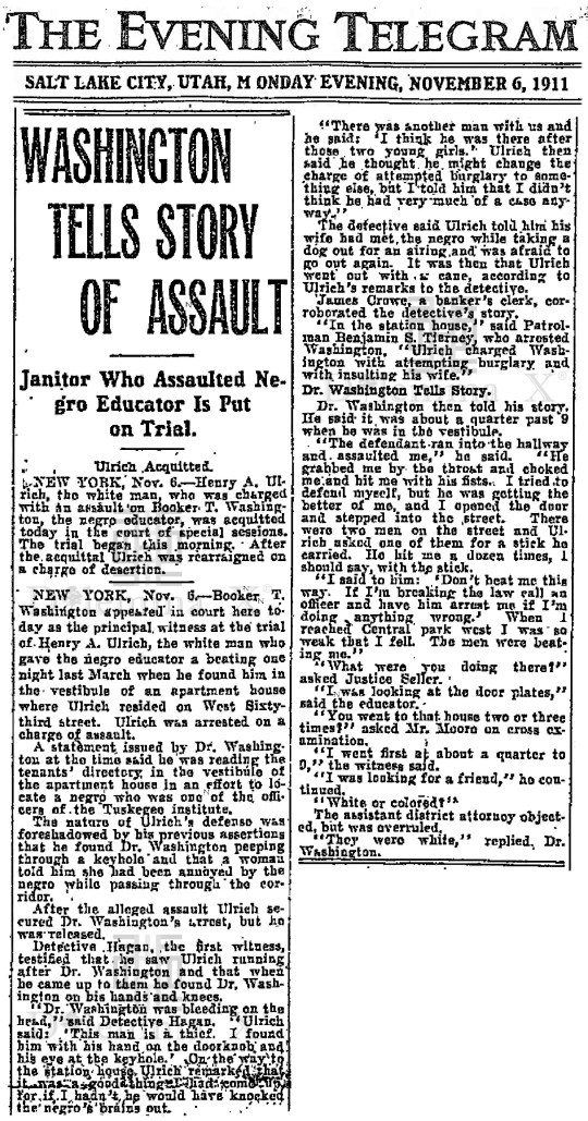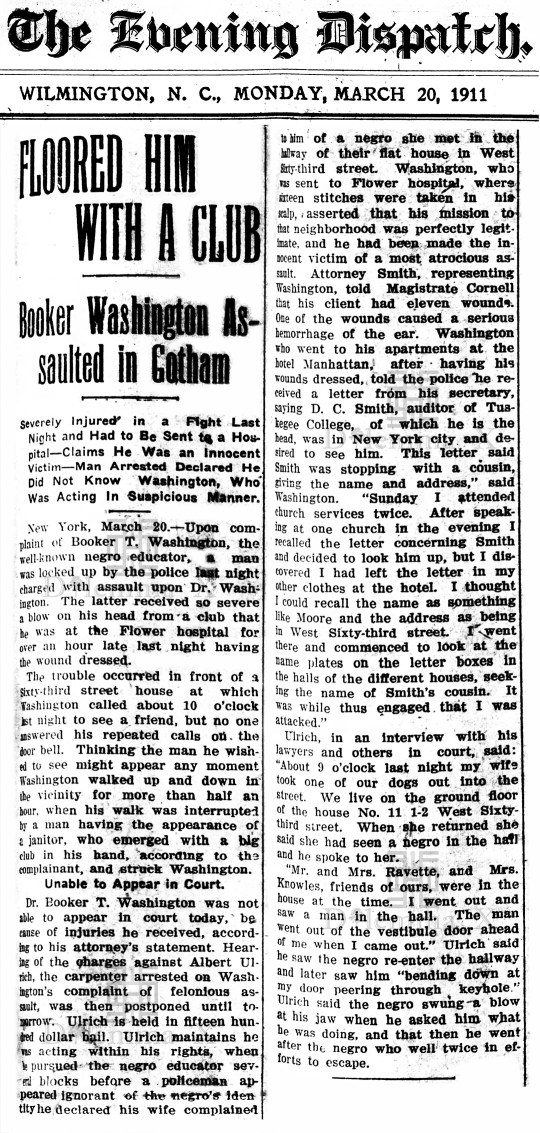 This is a brief look back, as reported in American newspapers, when Booker T. Washington was attacked for simply being an African American man in New York City.