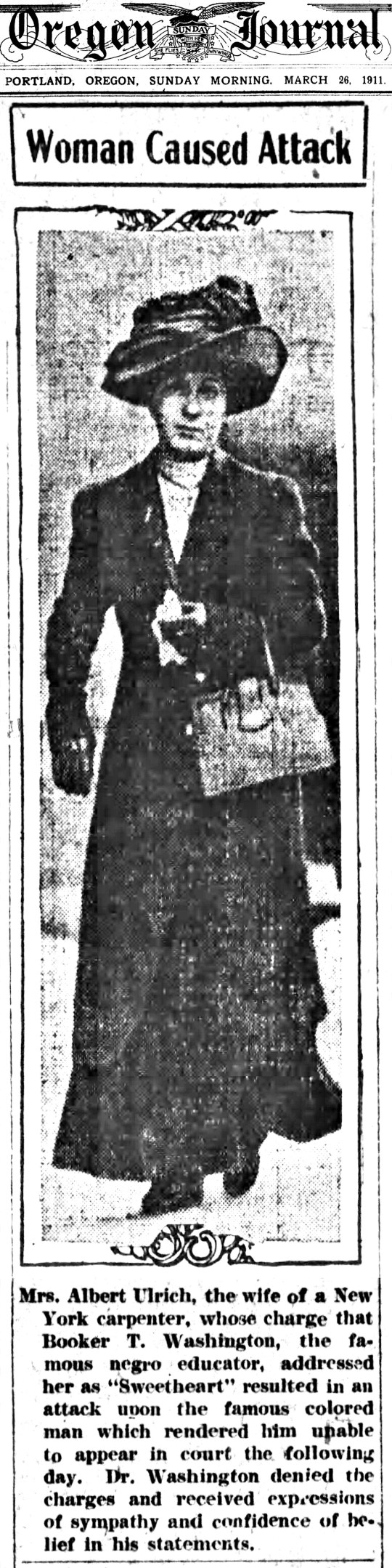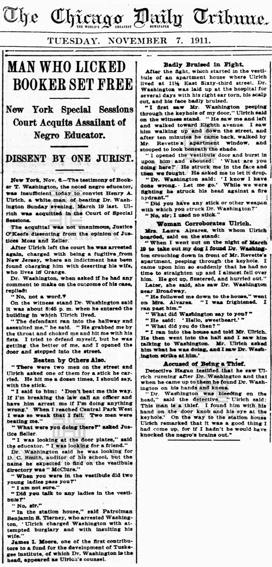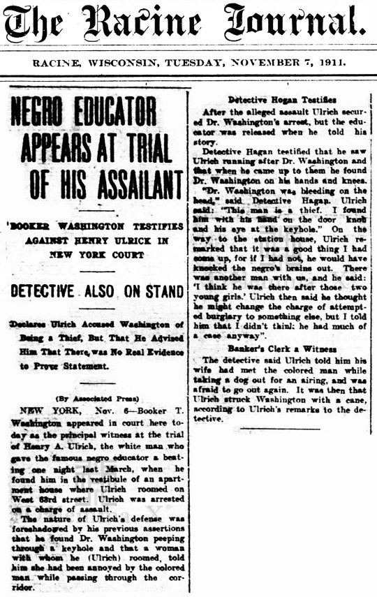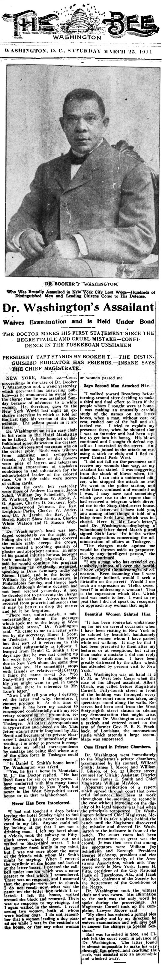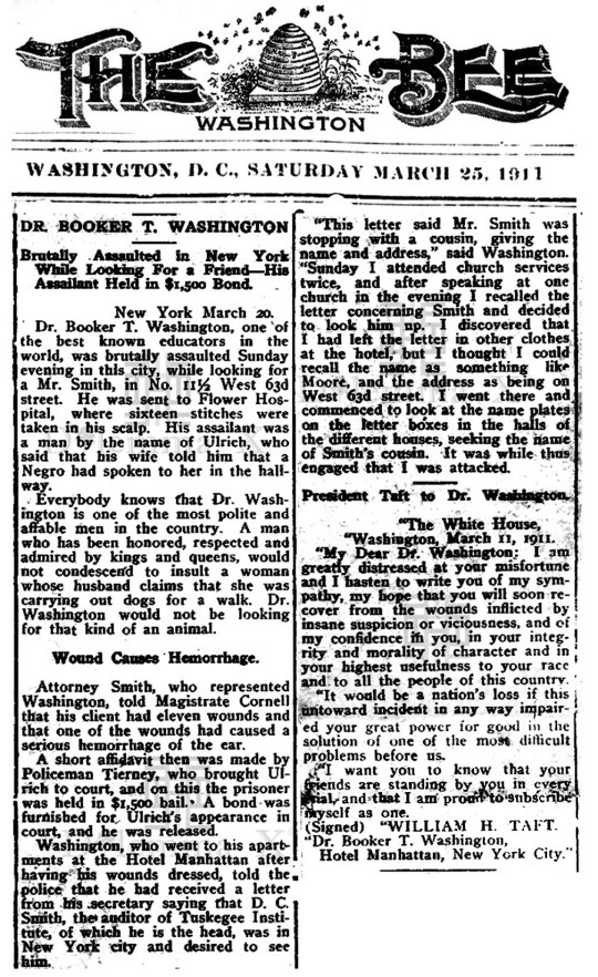 In 1911, Booker T. Washington was attacked for being an African American in New York City