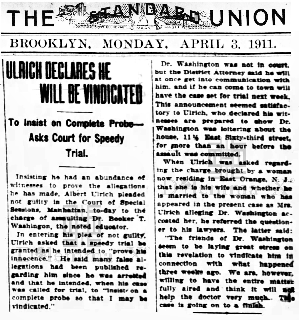 In 1911, Booker T. Washington was attacked for being an African American in New York City