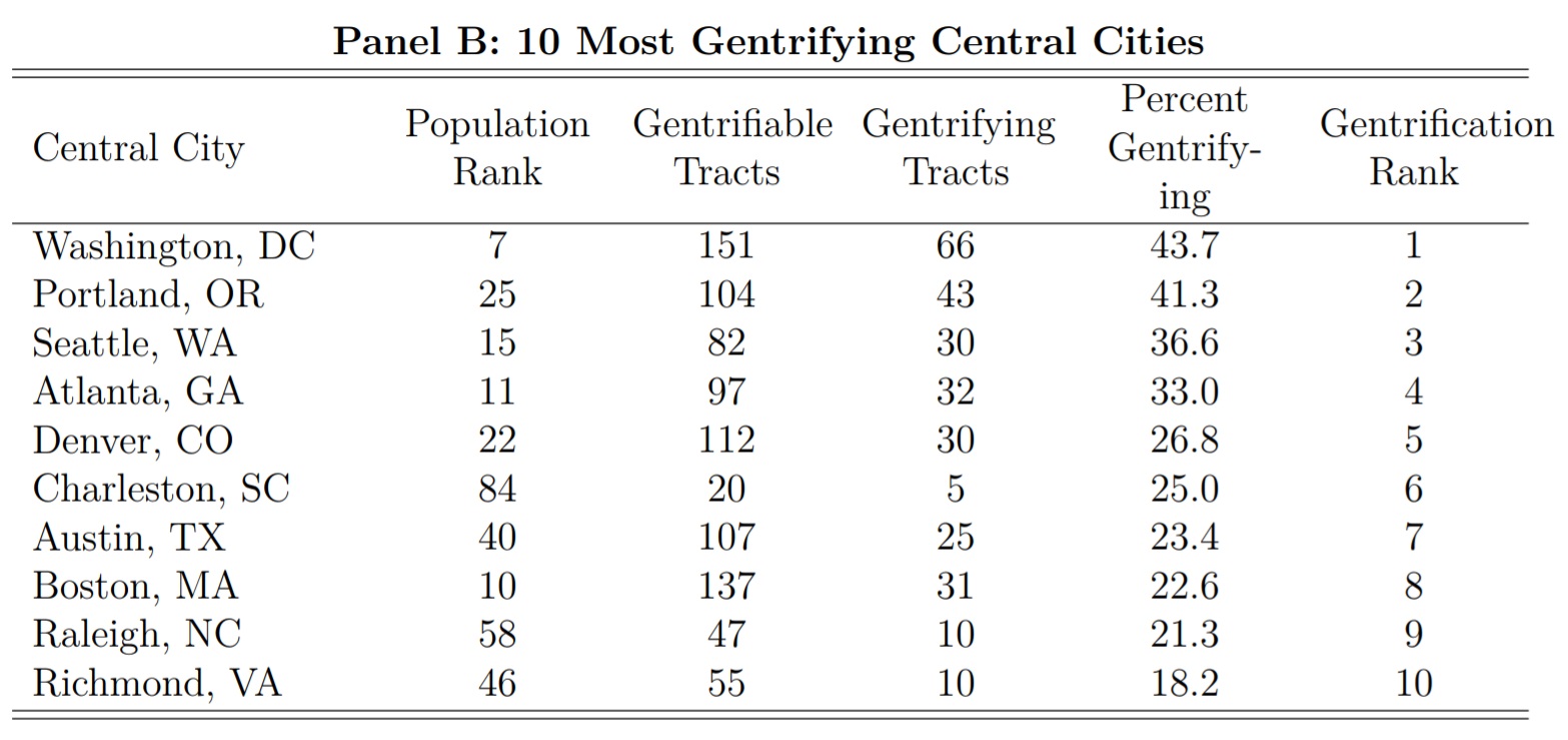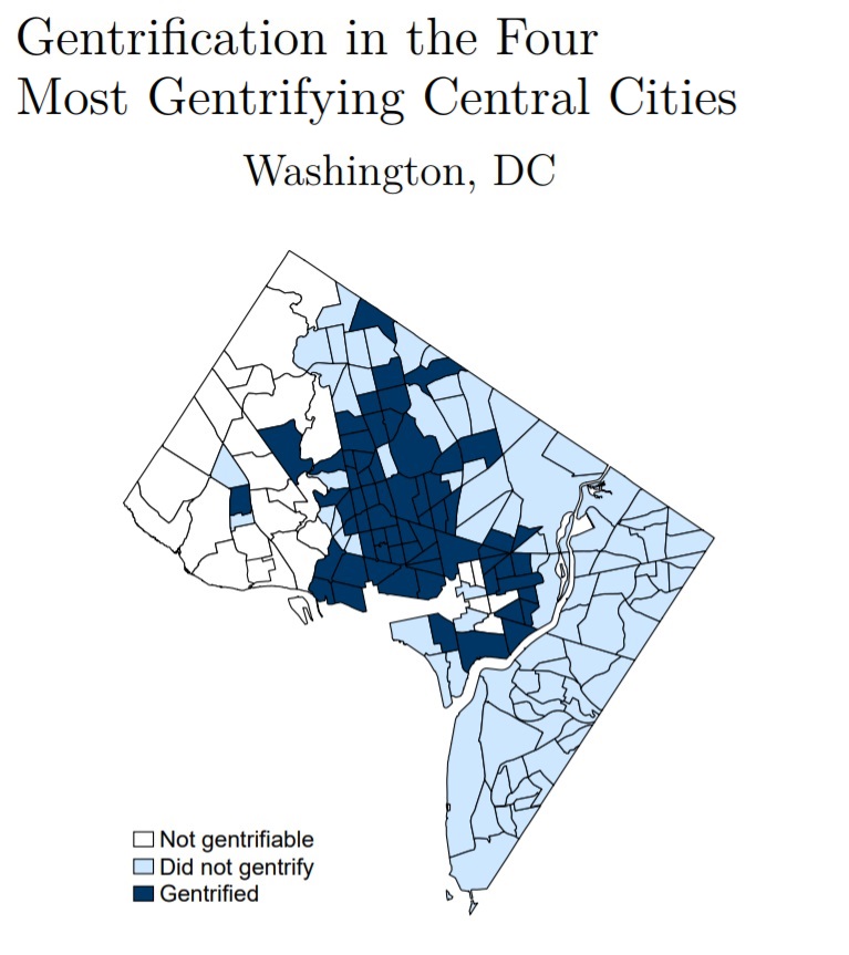 Washington D.C. had the largest share of gentrifying neighborhoods