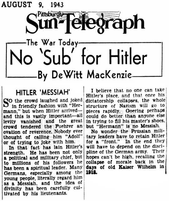 Yesteryear: A look back at when Adolf Hitler was viewed as a messiah by many German people