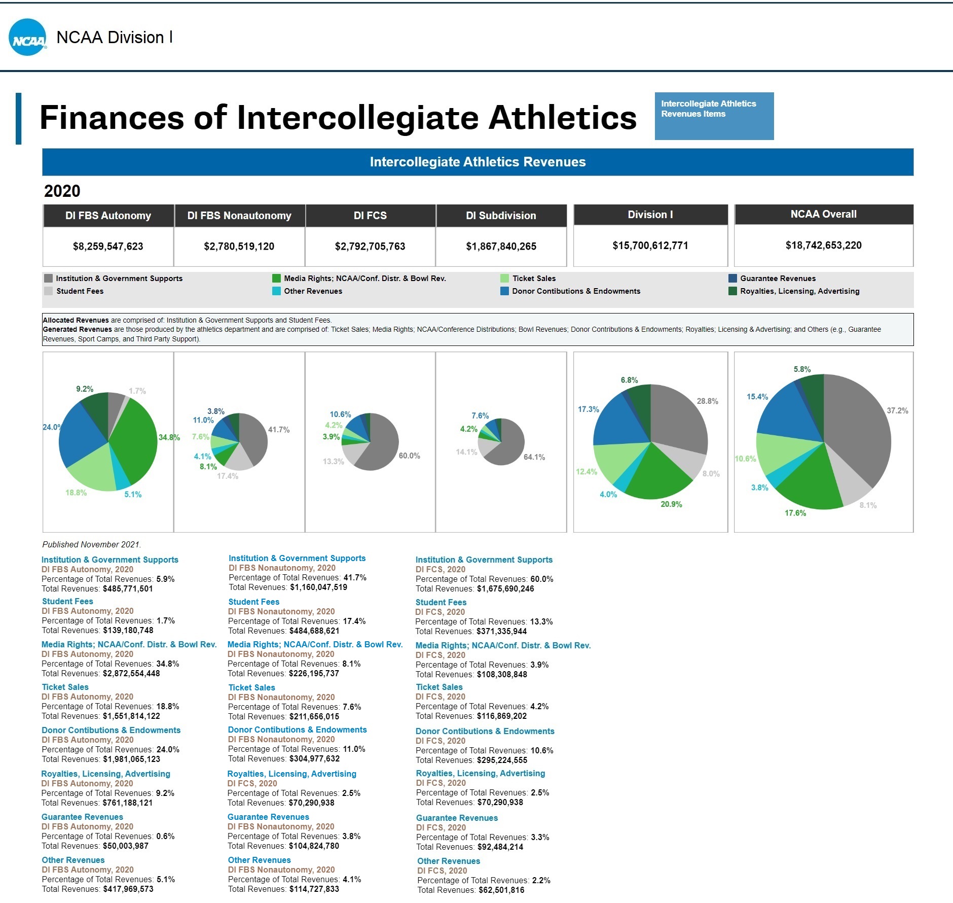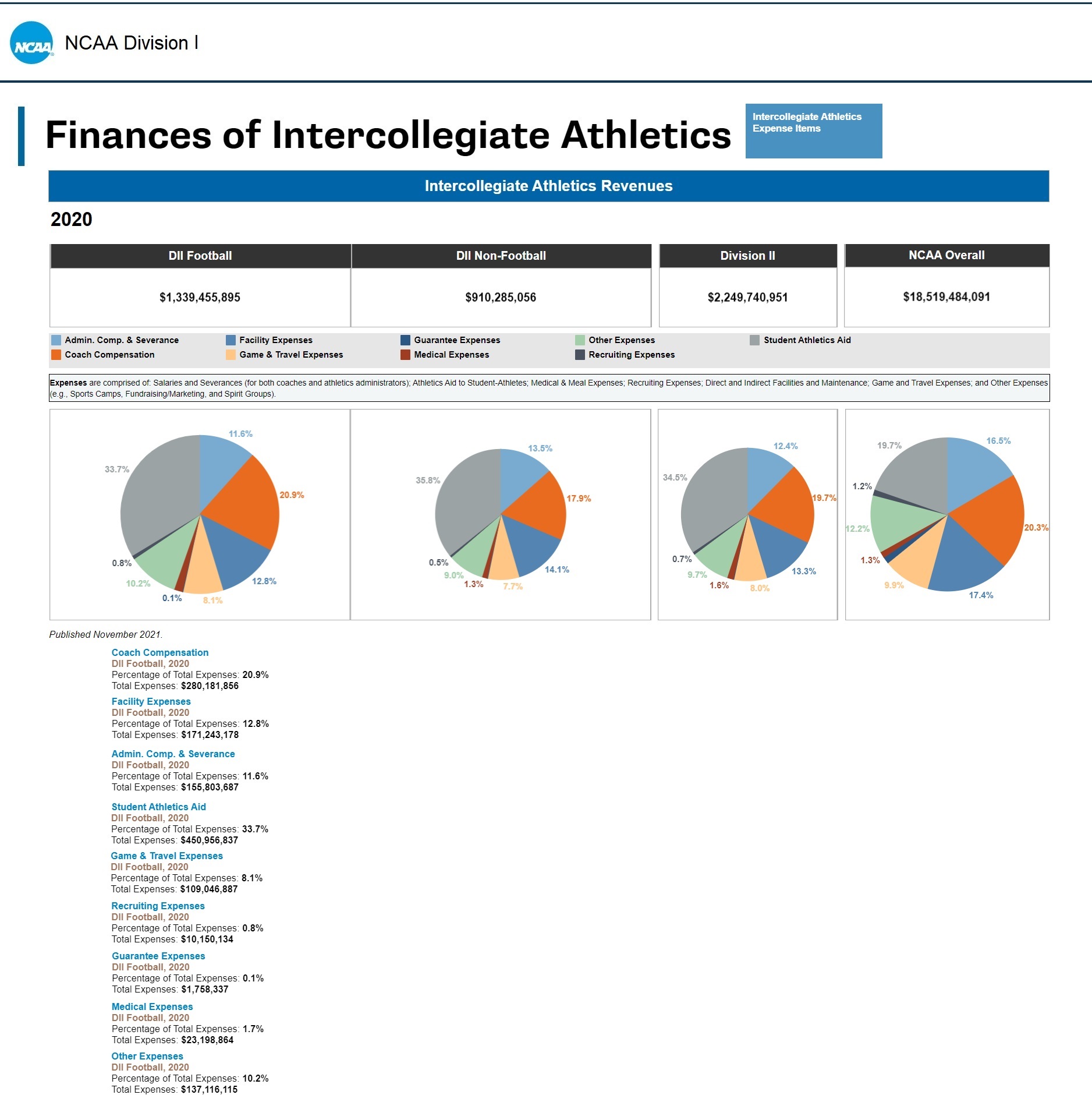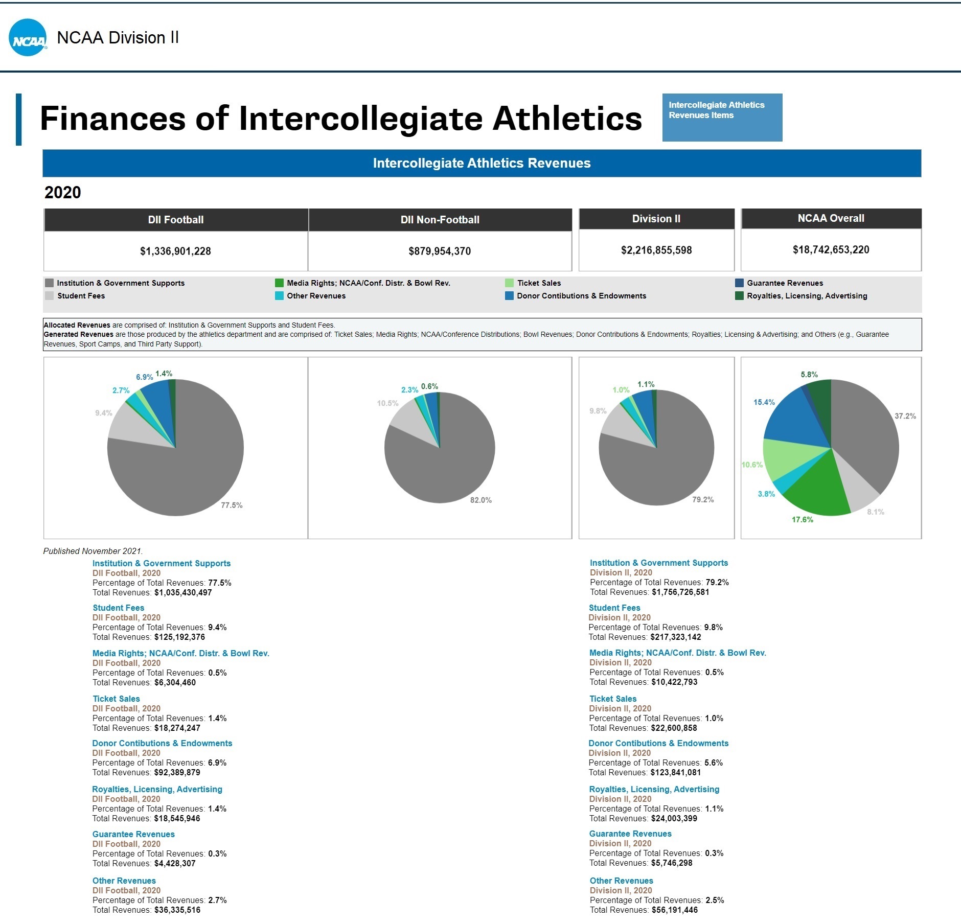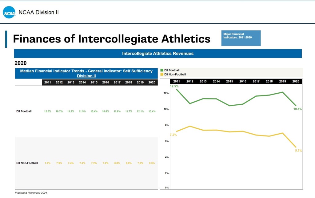The NCAA data come from the years 2011 to 2020 and published November 2021.