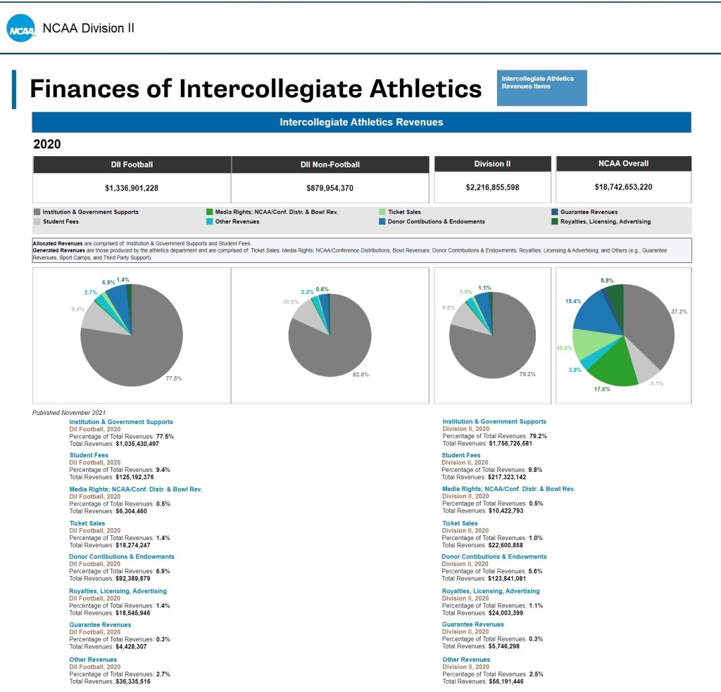 The data share below is for NCAA Division I and Division II only.